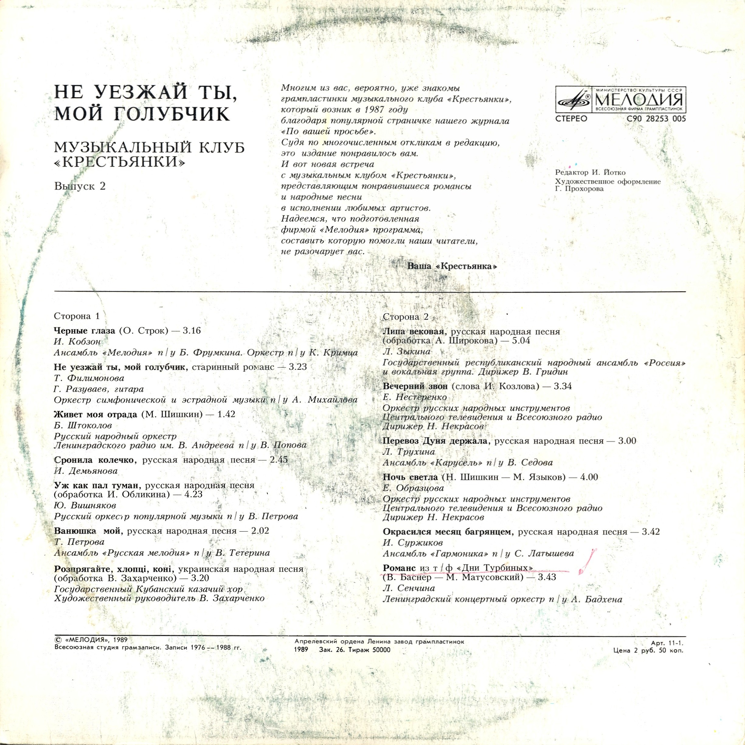 Музыкальный Клуб «Крестьянки» ~ (1989) VA - Не уезжай ты, мой голубчик