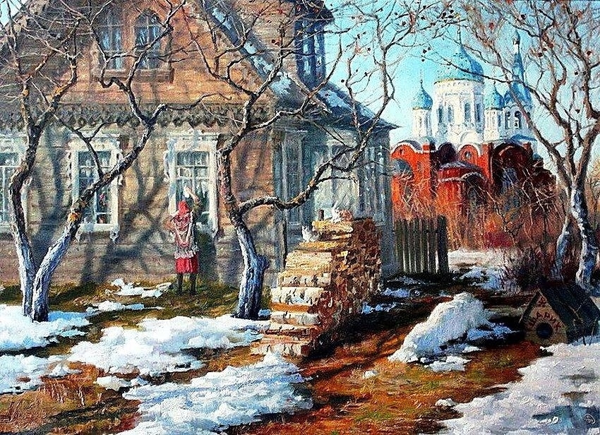 Весна по лужам плещет сверкающим крылом,