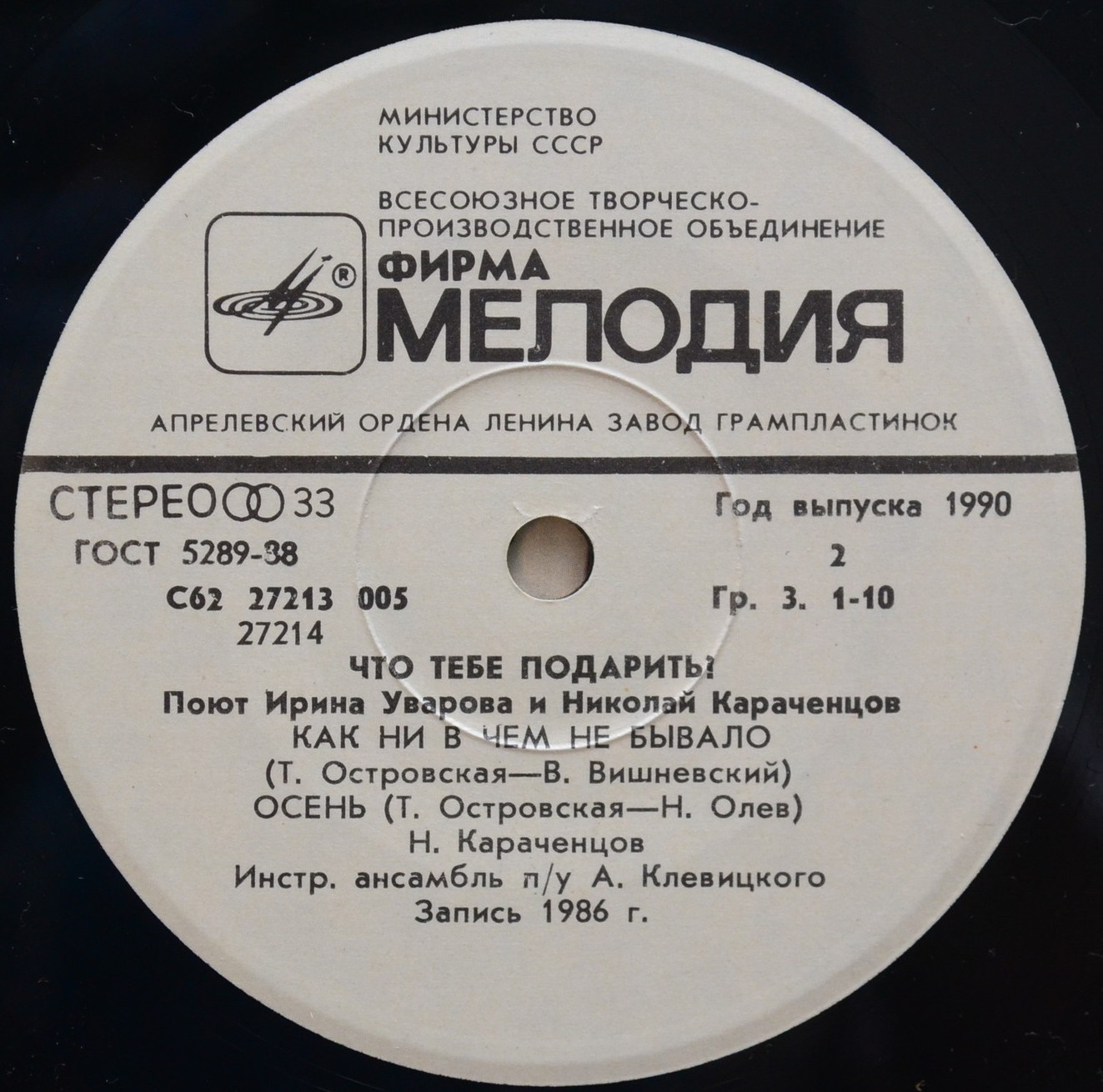 Лейбл: Мелодия АЗГП С62 27213 005