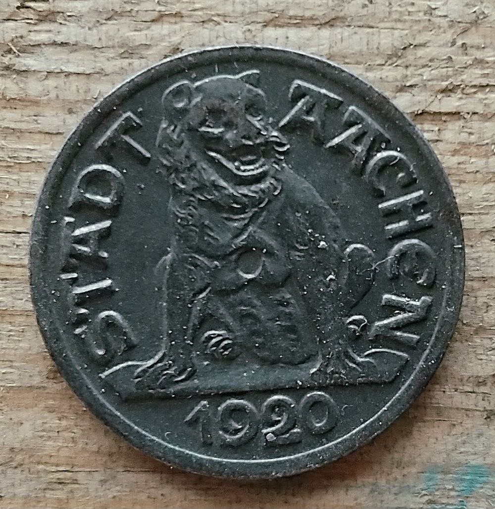 Нотгельд - деньги военного времени. Город Аахен 10 пфенигов 1920 г