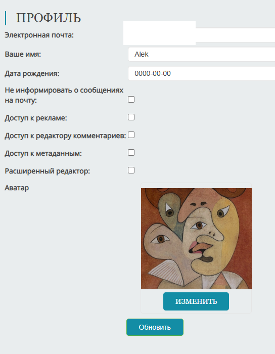 Жму кнопку (в моём случае) "Изменить". Далее выбираю картинку у себя в папочках. Загружаю. Загрузилось. Жму на "Обновить".