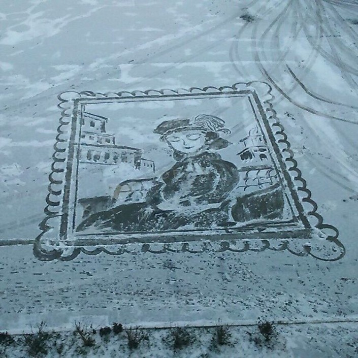 Семен Бухарин работает дворником в 25-м лицее Ижевска уже давно и все это время для учеников и педагогов лепит снеговиков, строит горки, рисует картины на снегу. До того, как прийти в школу, мужчина несколько лет работал рыбаком на Камчатке. До этого около 10 лет трудился в шахте, потом был пожарным, затем частным предпринимателем. После его просто попросили подработать в 25 лицее. Он так и остался на этом месте и с тех самых пор каждую зиму создает на снегу настоящие шедевры.