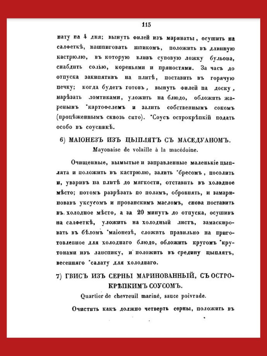 Майонеза из цыплят. "Альманахъ Гастрономовъ", И.М. Радецкий, 1852 год