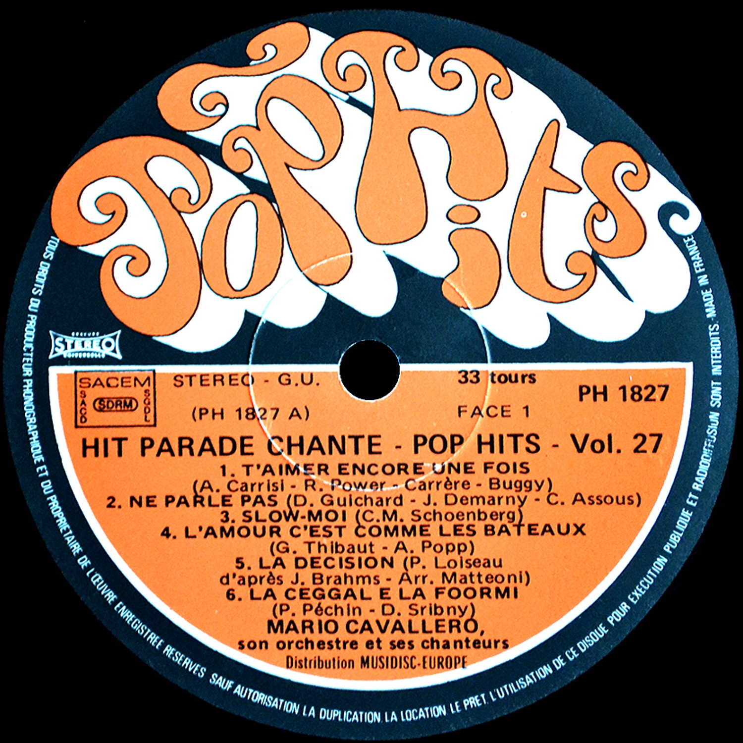 Orc. Mario Cavallero Et Son Orchestre - Pop Hits vol. 27 (France) LP27 (1976)