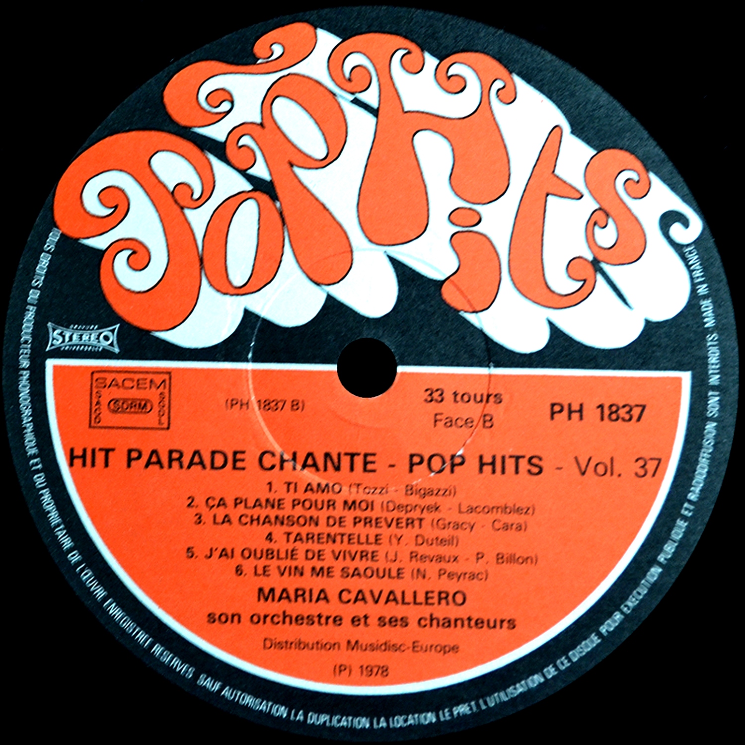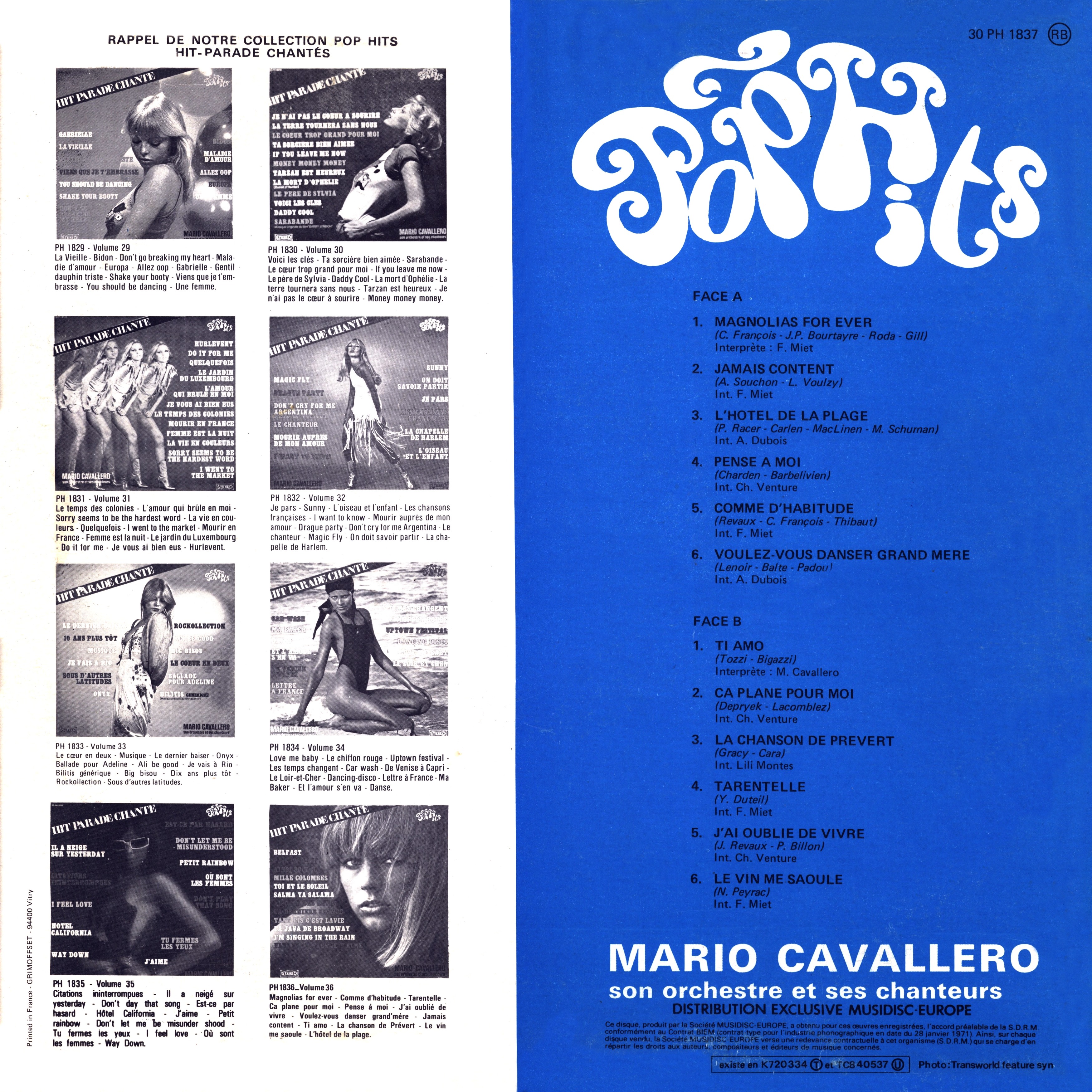 Orc. Mario Cavallero Et Son Orchestre - Pop Hits vol. 37 (France) LP37 (1978)