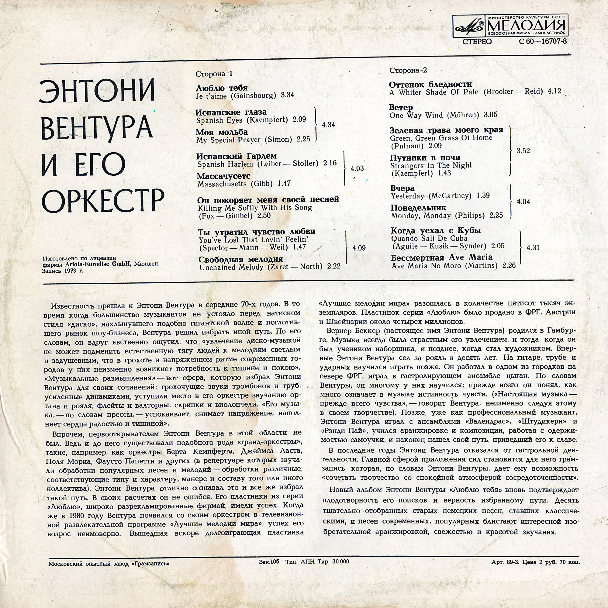 Спасибо, Владимир!!! Эта пластиночка у меня и сейчас живая. Покупал в универмаге пгт.Плещеницы, Белоруссия, в 1982 году.