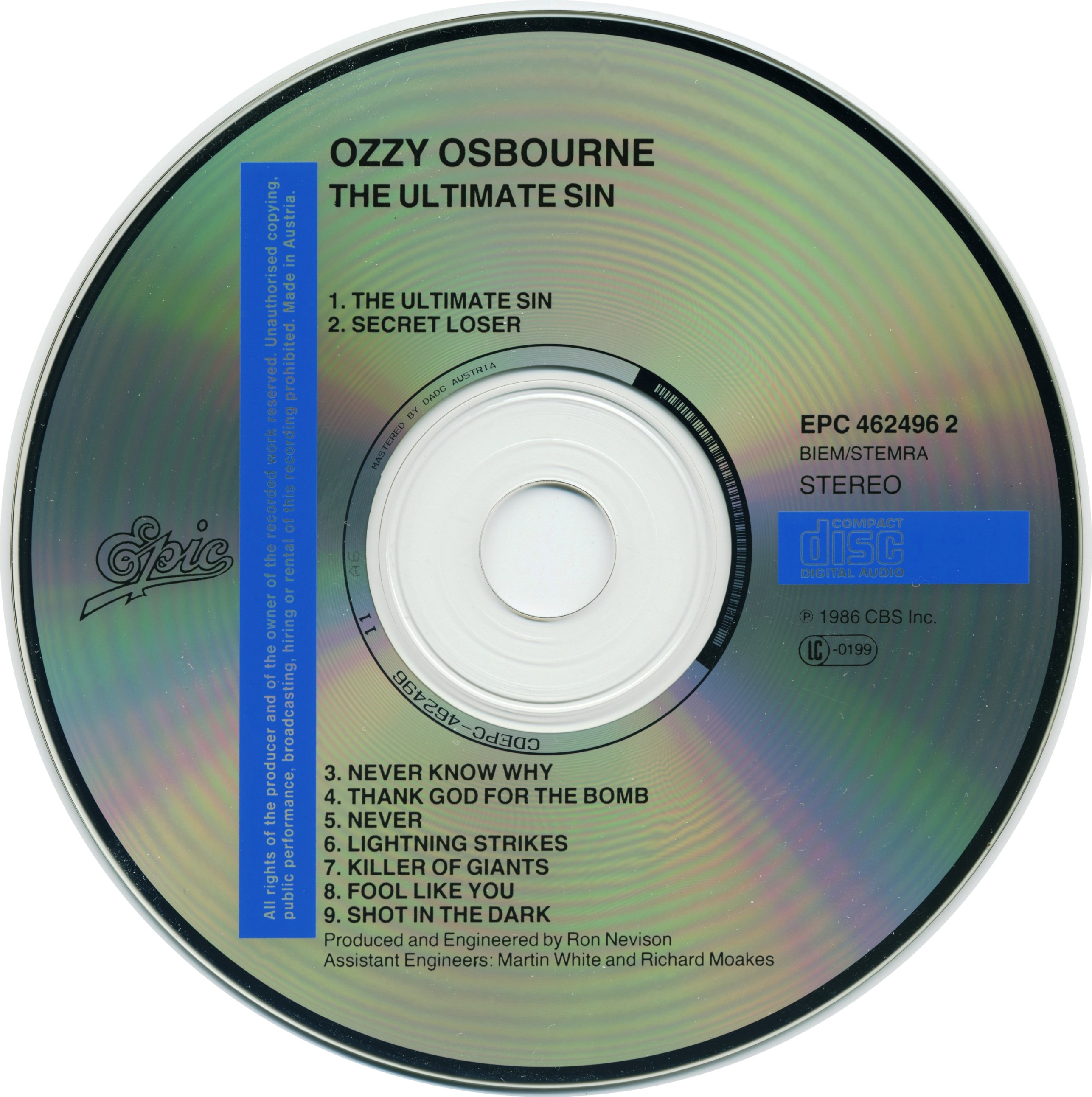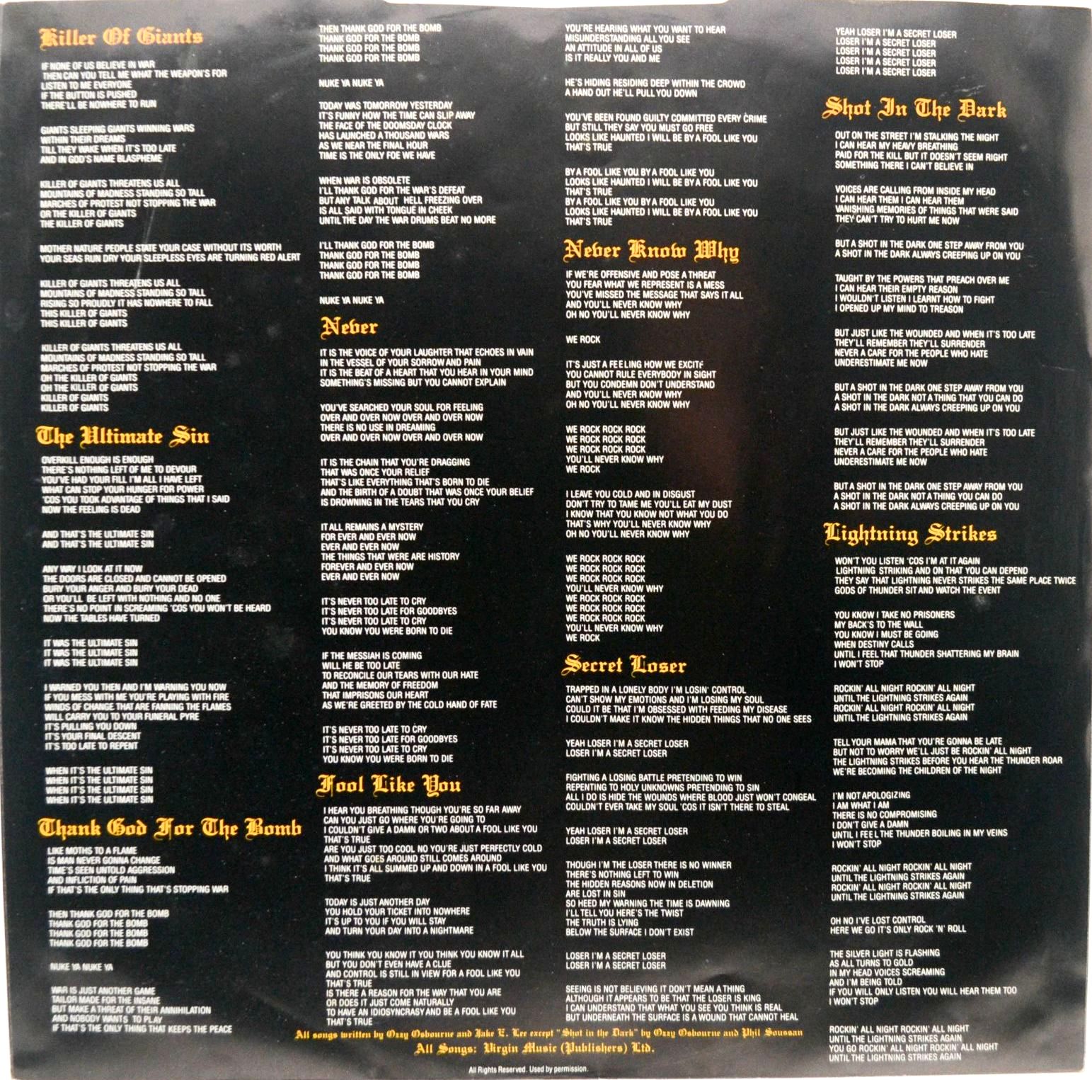 Оззи позже назвал «The Ultimate Sin» своим наименее любимым альбомом из-за продюсерских решений Рона Невисона, хотя фанаты высоко ценят треки вроде «Shot In The Dark», «Killer Of Giants» и «The Ultimate Sin».