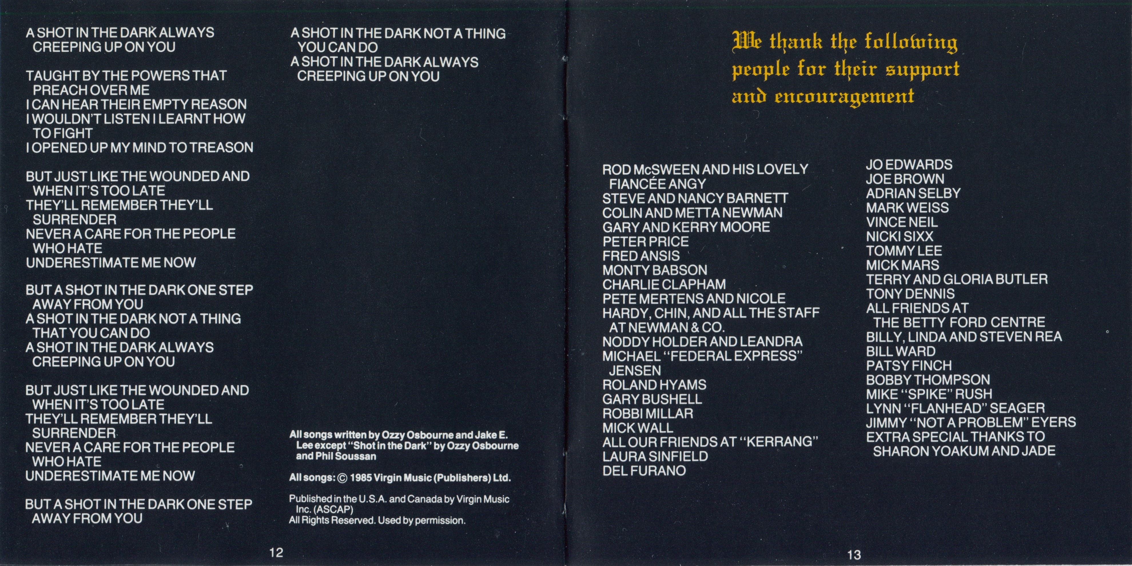 Это последний альбом Оззи с Джейком И. Ли, первый с барабанщиком Рэнди Кастилло и единственный с басистом Филом Суссаном, который написал хит «Shot In The Dark».