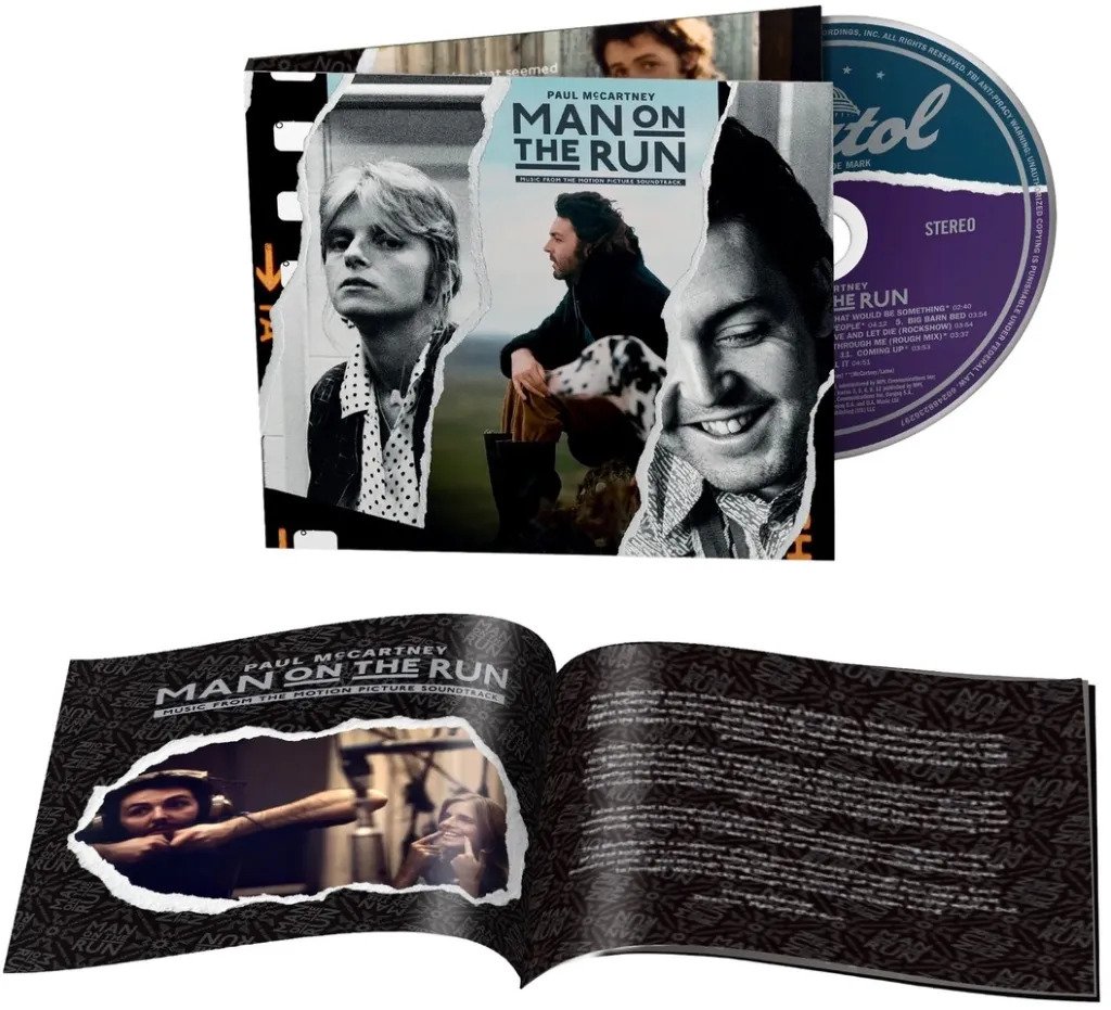 Альбом «Man on the Run - Music from the Motion Picture Soundtrack» включает 12 треков, в том числе три ранее не издававшихся «Gotta Sing Gotta Dance» (из The James Paul McCartney TV Special), «Arrow Through Me (Rough Mix)» и «Live And Let Die» (из концертного фильма Rockshow). Диск доступен в нескольких форматах. В частности, лейбл Джека Уайта Third Man Pressing выпустит ограниченным тиражом пластинку на желтом виниле. К каждому виниловому изданию прилагается тематический постер.