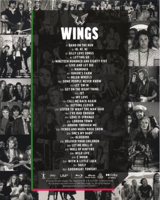 С любовью созданная капсула образов и музыки под личным контролем Пола Маккартни, WINGS включает в себя 32 вневременных международных хита, включая «Band on the Run», «Live and Let Die», «Jet» и «Let 'Em In», песни, которые до сих пор звучат в его живых выступлениях.