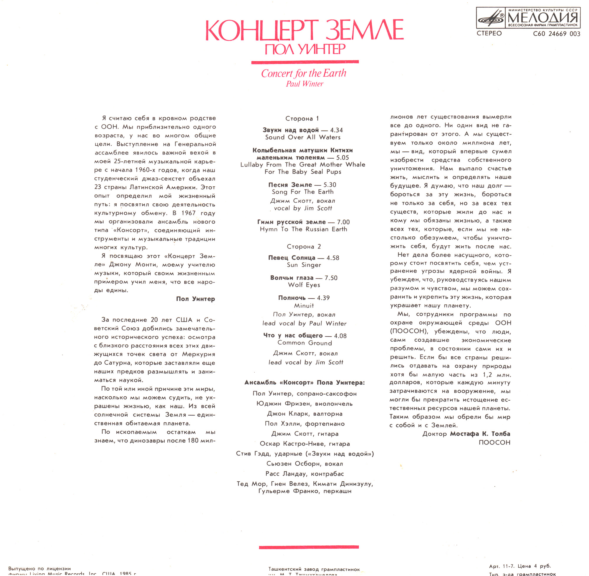 Paul Winter Consort (1985) - Concert for the Earth