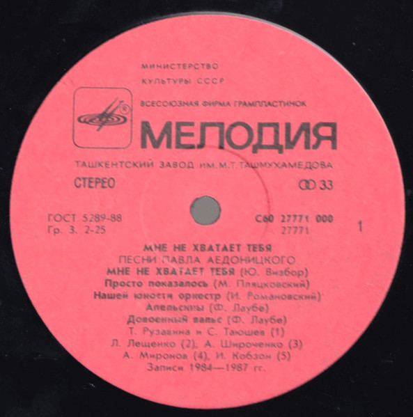 Павел Аедоницкий – Мне не хватает тебя (1989) VA