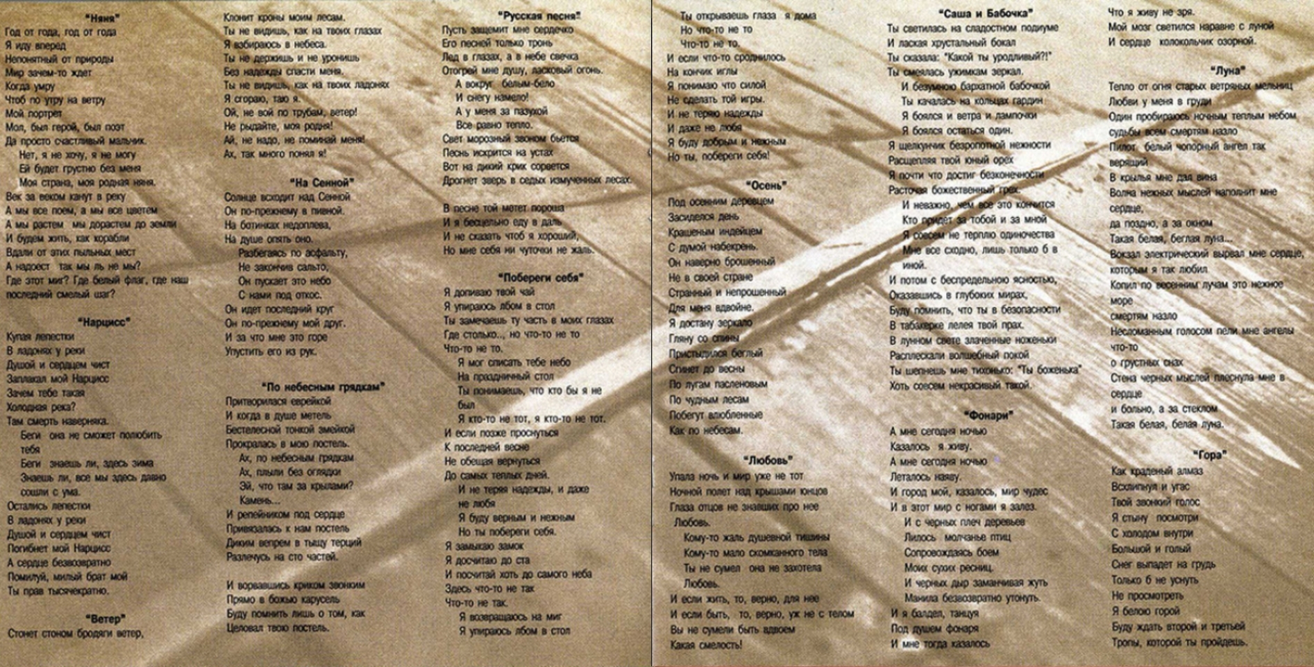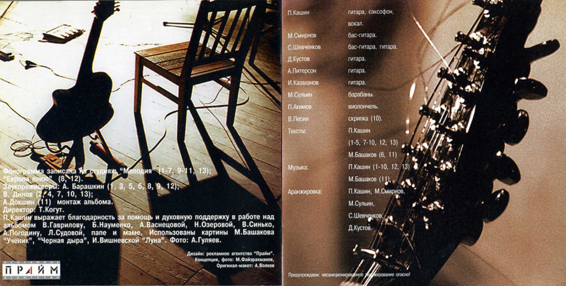 П.Кашин выражает благодарность за помощь и духовную поддержку в работе над альбомом В.Гаврилову, Б.Науменко, А.Васнецовой, Н.Озеровой, В.Синько, А.Погодину, Л.Судовой, папе и маме.