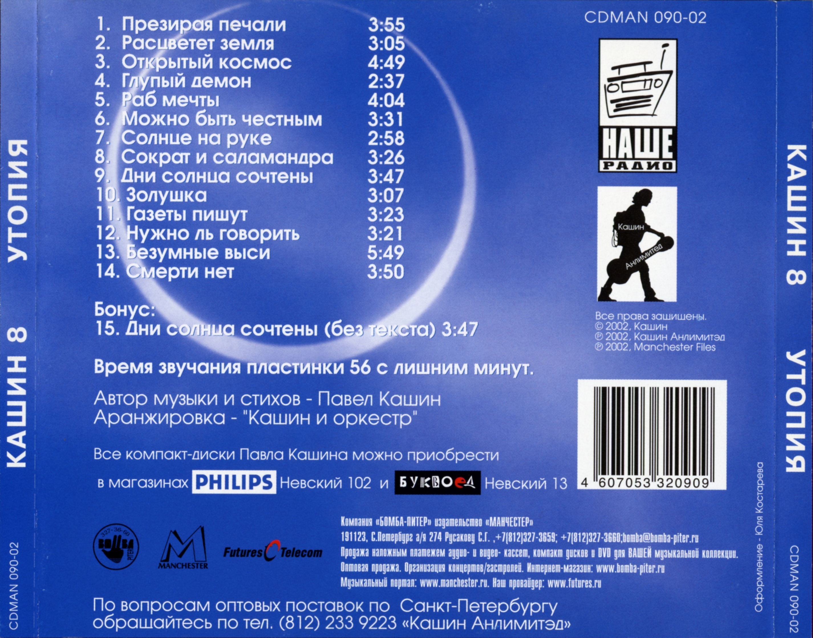 Альбом «Утопия» 2002 года - Павел КАШИН - особое явление в русской музыке. Прекраснейший человек, музыкант и личность. Он не подчиняется современным тенденциям современной музыки и живёт по своим правилам, пишет музыку сам и только от души, в каждой композиции описывая свои жизненные переживания, радости.