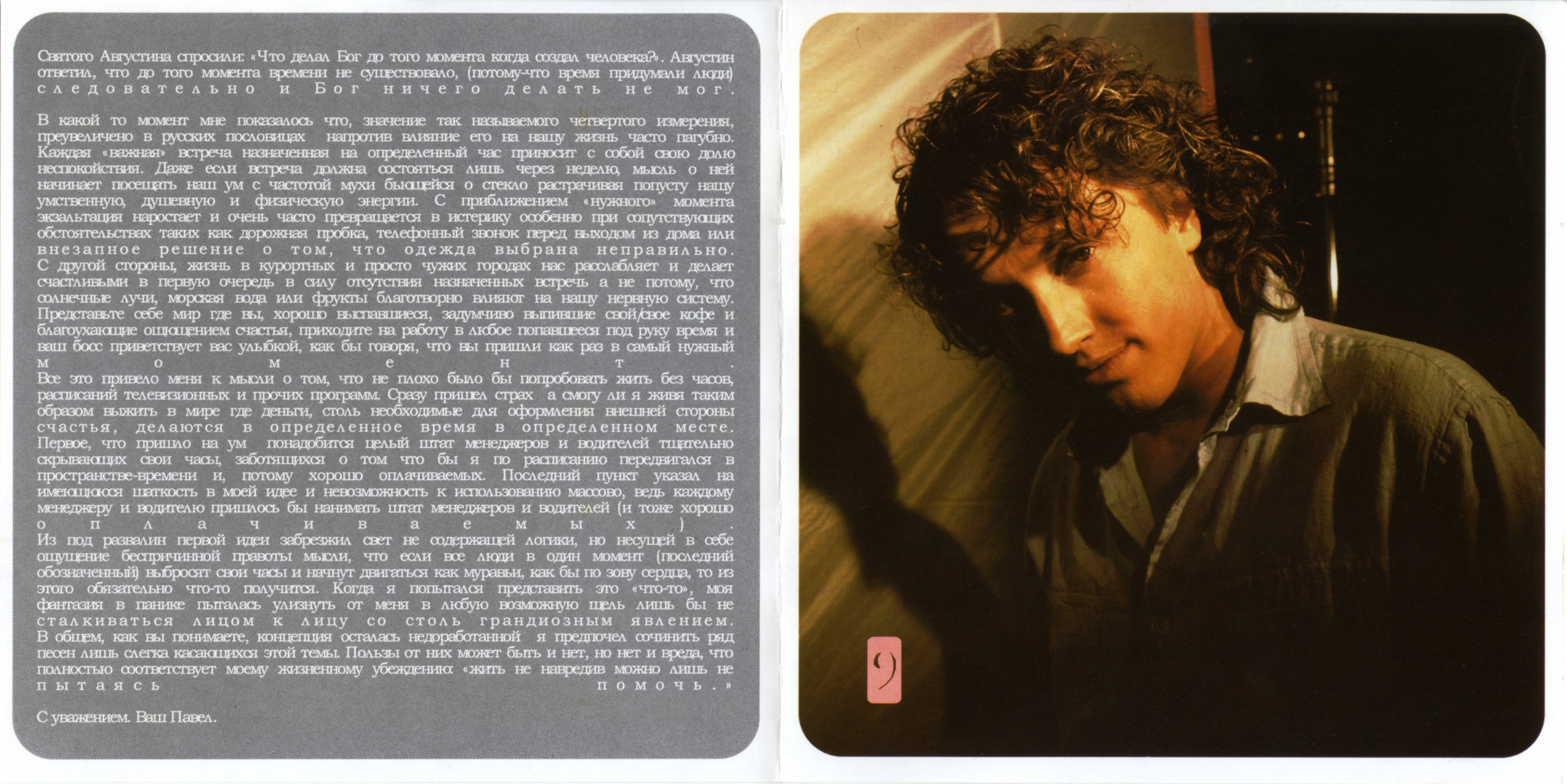 На самом деле, это альбом года. Закрепить за своей пластинкой сей статус официально Павлу Кашину помешает лишь его невписанность ни в одну из шоу-бизнес-группировок. Нигде - ни у бардов, ни у рокеров, ни у исполнителей романсов, ни в 'Песне года' - этот дрожащий взволнованный голос не считают своим. Да оно и не нужно - прежде всего самому певцу. Эту пластинку глупо рекламировать привычными средствами шоу-бизнеса. О ней не следует громко орать: её надо рекомендовать лучшим проверенным друзьям, ею надо наслаждаться, закрывшись от внешнего мира (хотя бы наушниками). Если же вы захотите делиться своим просветлением от 'До свидания, время' направо и налево, будьте готовы к неадекватным реакциям: в ответ могут смеяться, говорить гадости. Не стоит спорить, кричать: 'Ну как же вы не понимаете!'. Не понимают - и ладно. Их проблемы.