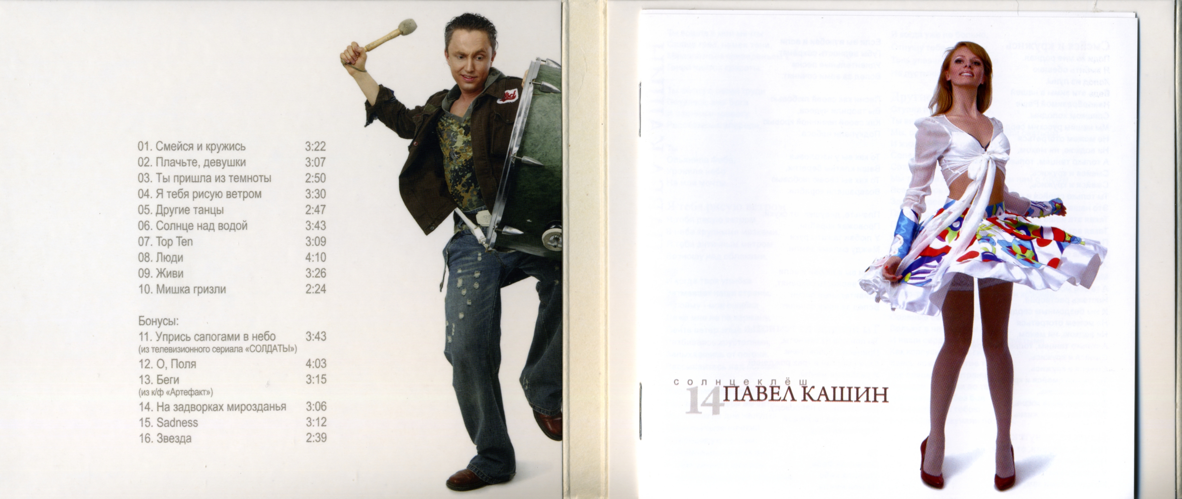 И вот новая пластинка нам опять люба, хотя никакими инновациями артист слушателя не балует и даже название зачем-то стянул у "Маши и медведей". В заголовках и текстах композиций слово "солнцеклёш" не встречается, так что объяснить выбор Павла Кашина сможет только сам Павел Кашин, если захочет. Правда, на обложке название иллюстрирует романтичная особа в белых чулках и юбке-солнцеклёш — вот, видимо, путь к разгадке.