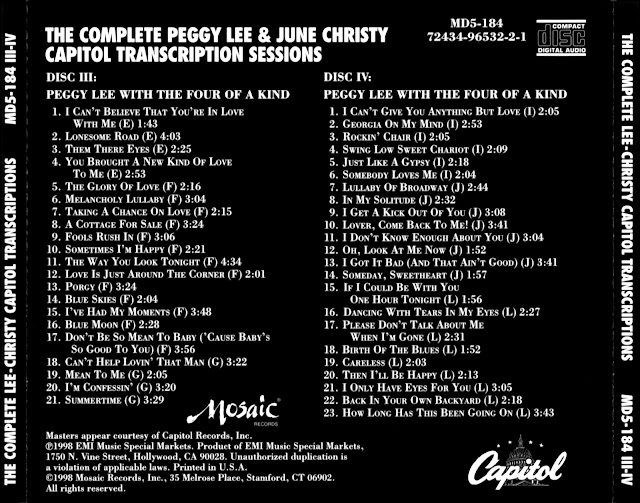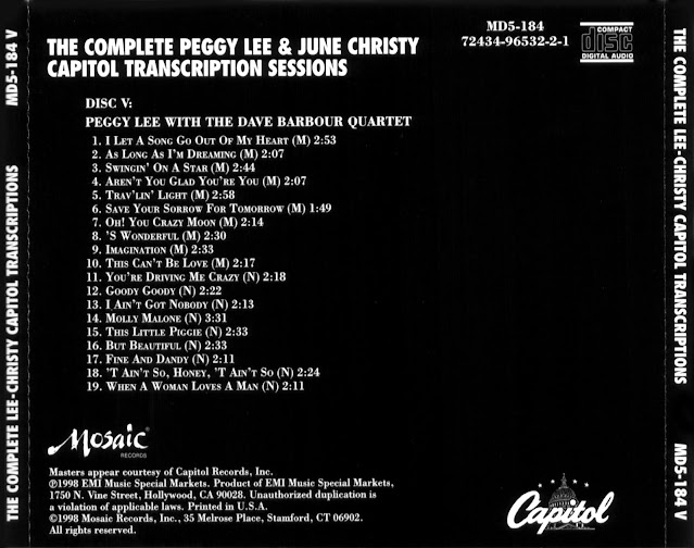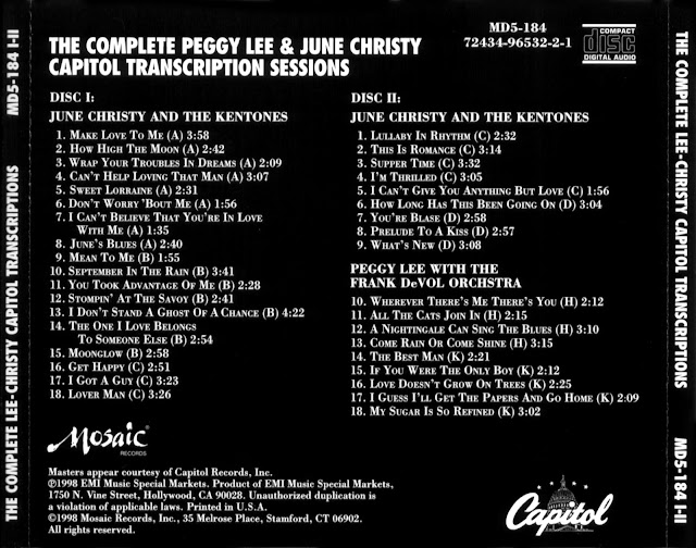 Peggy Lee & June Christy – The Complete Peggy Lee & June Christy Capitol Transcription Sessions (5CD)