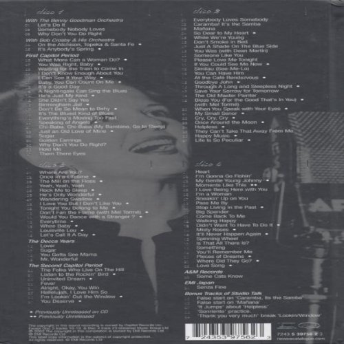 Peggy Lee was a renaissance woman, a multi-talented singer and composer who achieved popular as well as critical success. Short of a complete recordings box set, The Singles Collection is the best Peggy Lee career anthology yet, and a big improvement over the oddly compiled and sequenced 1998 box set Miss Peggy Lee. The Singles Collection isn't complete -- Lee released hundreds of singles -- and it doesn't come close to compiling all of her hits (in fact, it doesn't even compile all of her Top Ten hits), but it does offer a chronological journey through her catalog from her early days with Benny Goodman and Bob Crosby all the way up to the '70s when she recorded for A&M. Although Capitol Records produced the box set, the selections include cuts from other labels, including Lee's Decca Records period. Nearly half of the box's 110 tracks are new to CD, and collectors will appreciate the glimpse into the studio afforded by a handful of bonus tracks that include false starts and studio chatter. Lee may have enjoyed commercial success with "ethnic" novelties ("Manana" being the foremost example) and upbeat pop songs, but it is her interpretations of serious jazz and pop tunes that have made her a contender for the title of Best Vocalist of the 20th Century. The Singles Collection follows her artistic growth and demonstrates the breadth of her interpretive abilities, which gives a better picture of Lee's artistry than any single album or inferior anthology could do.