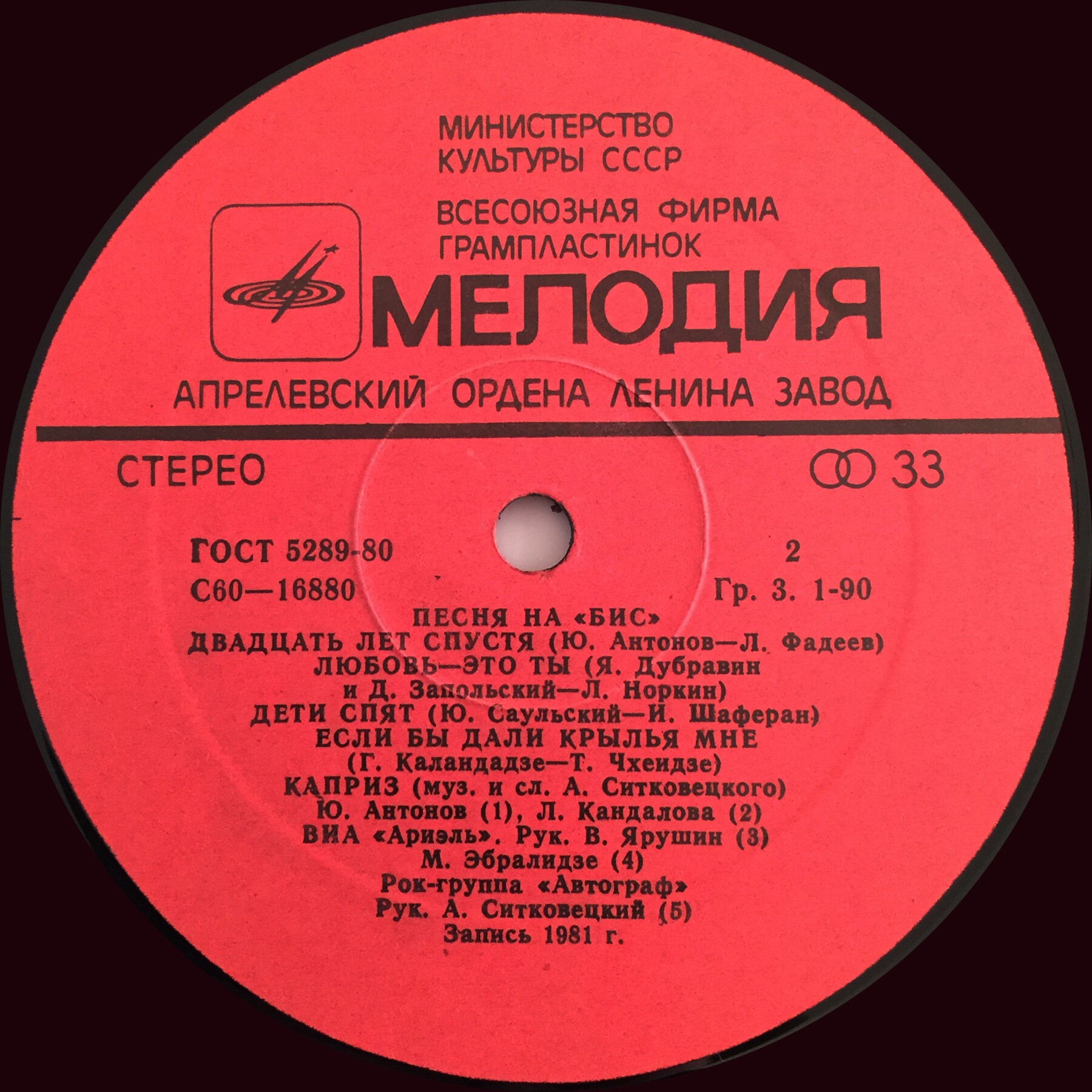Лейбл: Мелодия АЗГП C60 16879~80