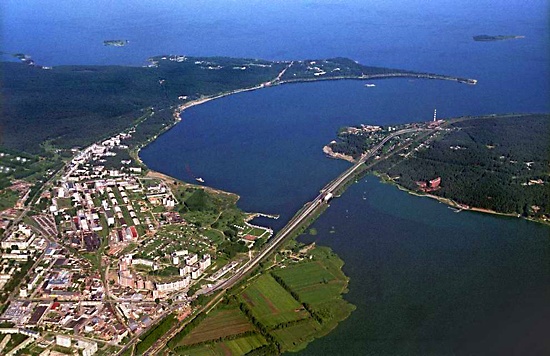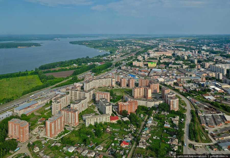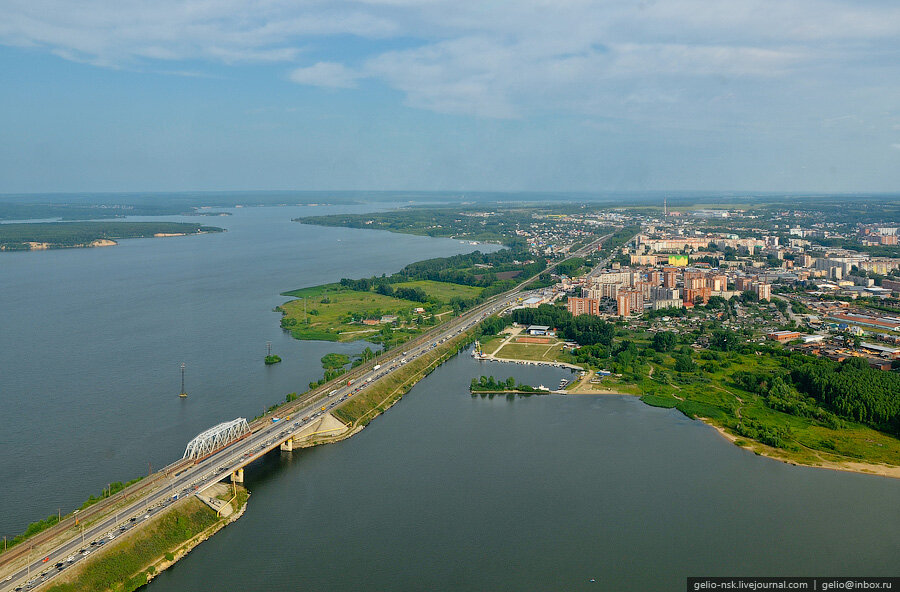 Справа налево. Река Бердь, город Бердск, Бердский залив и Обское водохранилище