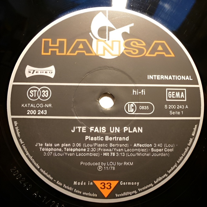 Plastic Bertrand ~ (1978) J'te Fais Un Plan