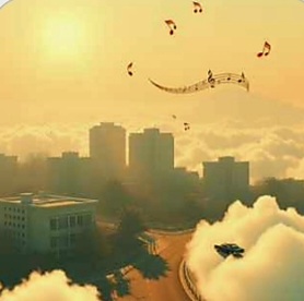 The music's playing loud on the radio