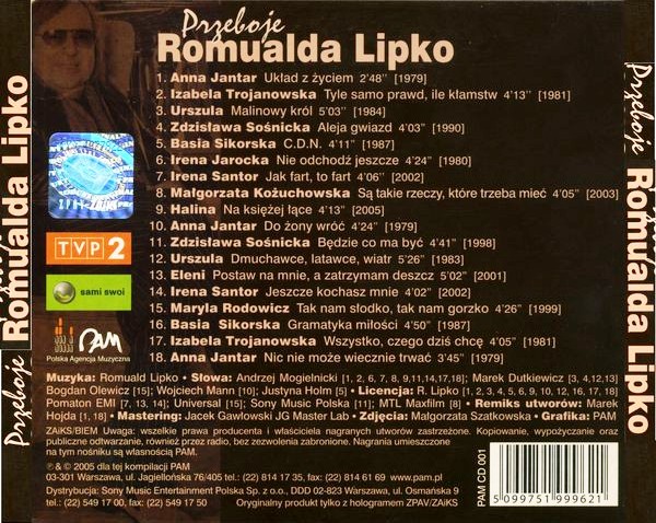 Доброе время суток. Обращаюсь снова с просьбой к уважаемым членам сайта: ищу трек Irena Jarocka 2005 года "Nie Odchodz Jeszcze" из альбома VA - Przeboje Romualda Lipko 2005 года. На Rutube попался, но качество плохое и моно.