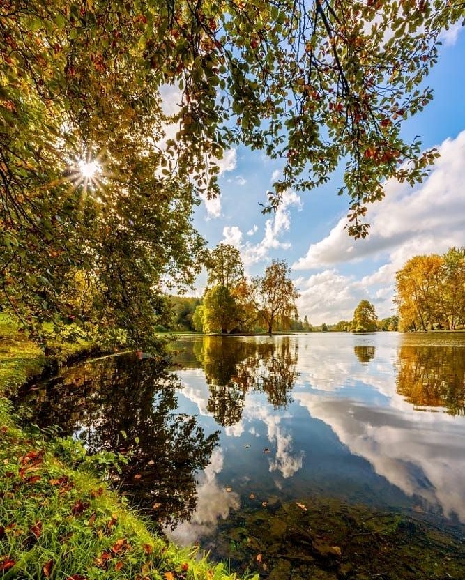 Это осенний пейзаж нашего Петергофского парка. Большой каскад осенью.
