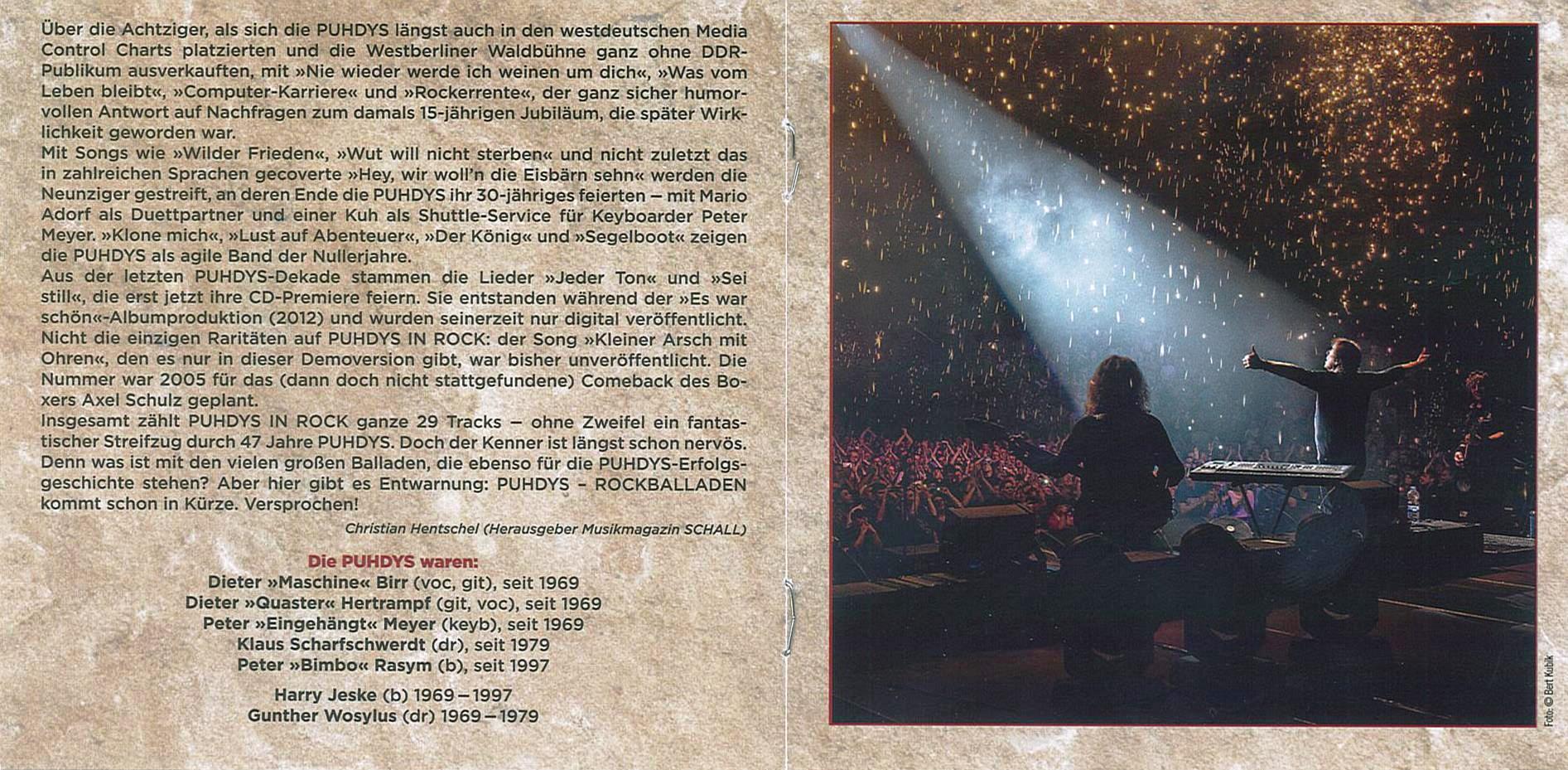 Puhdys, также место для двойного альбома »Puhdys - Rock - Balladen« с такими хитами, как »Perlenfischer«, »He, John«, »Hiroshima«,»Lebenszeit«,»Bis ans Ende der Welt«,»Lied für Generationen«, »Magisches Licht«.