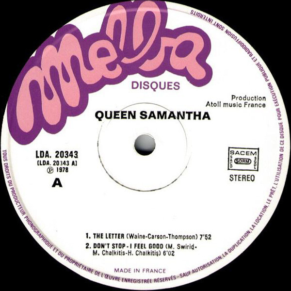 Gloria Brooks успешно зарекомендовала себя в качестве фоновой вокалистки на многих записях Harry Chalkitis, поэтому он решил создать на основе ее голоса диско-проект, присвоив ей имя «Queen Samantha». Для этого проекта он совместно с женой Мириам написал ряд танцевальных номеров, добавив к ним адаптированный в духе времени старый проверенный хит «The Letter» из репертуара американской группы «The Box Tops». Дебютная пластика Queen Samantha была выпущена во Франции на лейбле «Melba Records», а в Соединенных Штатах - лейблом «Marlin».