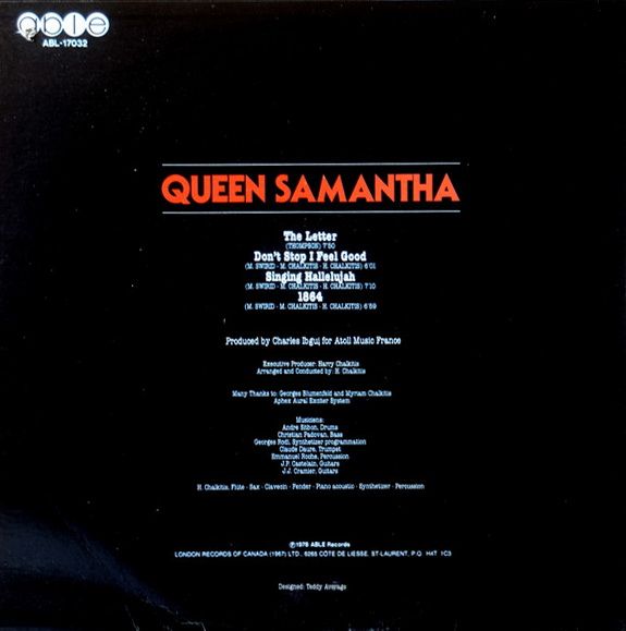 Queen Samantha – сценический псевдоним родившейся в Чикаго американской певицы Gloria Brooks, выпустившей под этим именем три долгоиграющих альбома в конце семидесятых: «The Letter» (1978), «Queen Samantha II» (1978) и «Queen Samantha» (1979). За ее спиной стоял проживающий в Париже греческий иммигрант Harry Chalkitis – яркий представитель шоу-бизнеса своего времени: блестящий композитор, аранжировщик, певец, мультиинструменталист и продюсер, который был одним из соавторов композиций «My Reason», «Lost in a Dream» и «When I'm a Kid», записанных Демисом Руссосом на альбоме «Forever And Ever».