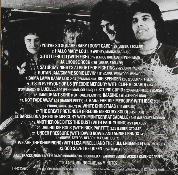 Несмотря на то, что все участники Queen в годы своей славы были превосходными авторами песен и композиторами, они никогда не боялись и не отказывались открыто демонстрировать свои музыкальные вкусы и при этом исполнять песни других участников. Чаще всего они звучали на концертах, которые они играли в ту эпоху, но никогда не появлялись на их студийных альбомах.