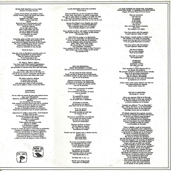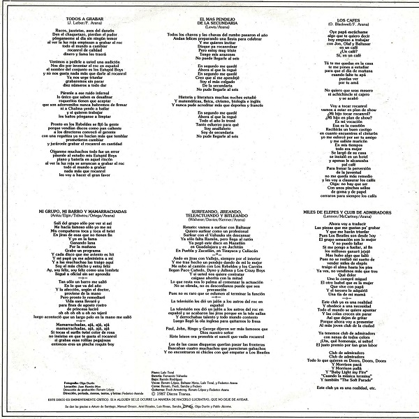 Поэтому Федерико и его друзья выпустили данный материал в 1987 году, двойной LP "Historia Del Rock De Aquí De México" с двойной же обложкой, как это было принято у лучших двухдисковых рок-записей (двойной диск с двойной обложкой кажется абсурдом, но стоит вспомнить, что в то время выходили, как правило, простые, более толстые обложки, чем следовало, и включали в себя две, три или более пластинок; это было ужасно, и если вы теряли пластиковые конверты, которые к ним прилагались, пластинки царапались). Обложка представляет собой пародию на конверт пластинки знаменитого альбома "Sergeant Pepper..." британской группы The Beatles, с соответствующими карикатурными изображениями.