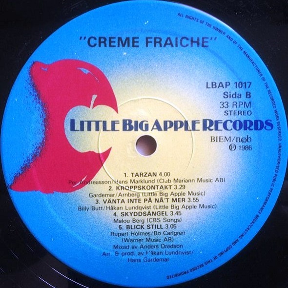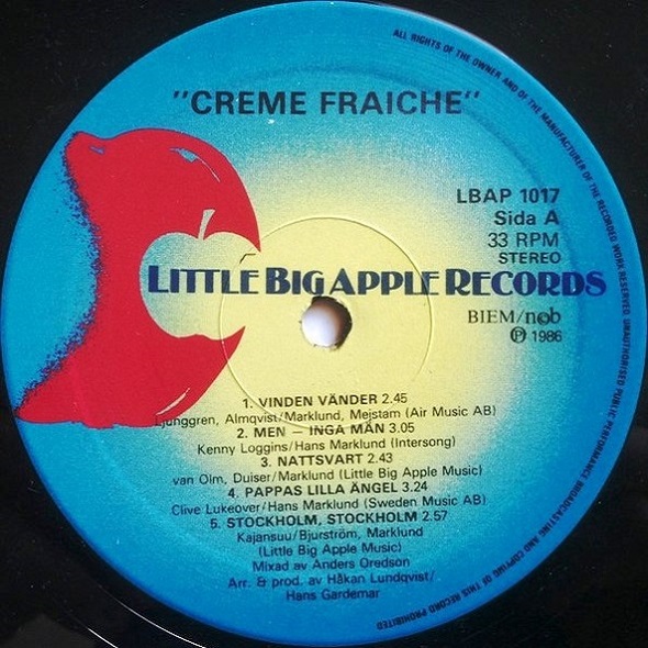 Примерно в середине своей активной концертной деятельности группа, а фактически трио Crème Fraiche, на отечественном лейбле «Little Big Apple Records» выпустили пару синглов и единственный полноформатный, одноимённый альбом (1986 год) на виниле, разумеется, и поныне весьма редкий и ещё ни разу не переизданный ни в каком другом формате.