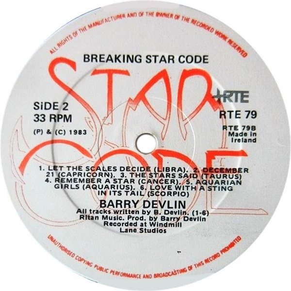 После первого распада группы Horslips Барри Девлин в 1983 году выпустил сольный альбом под названием «Breaking Star Codes», являющийся концептуальным, с циклом из 12-ти песен, каждая из которых в общих чертах основана на истории об одном из 12-ти знаков Зодиака. Среди музыкантов, занятых при записи пластинки, присутствуют флейтист Джим Локхарт (стал продюсером лейбла RTE после распада группы Horslips), также исполнивший клавишные и струнные аранжировки; и Стив Трэверс (играл с The Crack, а затем объединился с бывшим гитаристом Horslips Джонни Фином в дуэте Fean & Travers), сыгравший на басу на четырёх треках.