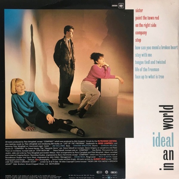 LP "In An Ideal World" (1985), достаточно редкий и поныне, ещё ни разу и ни в каком виде не переизданный, а равно синглы Sunset Gun призваны были стать хитами, однако, поскольку альбом не пользовался спросом, боссы "CBS Records" расторгли контракт с трио, а его участники разошлись в разные стороны, чтобы заняться новыми музыкальными проектами.