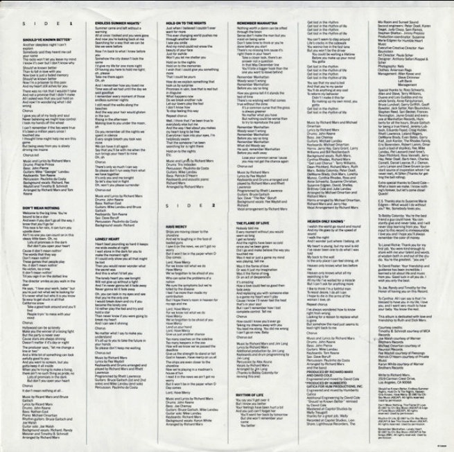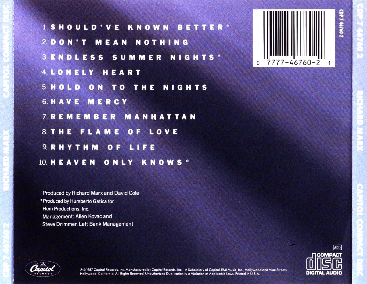 В начале 1980-х Ричард Маркс начал свою музыкальную карьеру в Лос-Анджелесе в качестве фонового певца и автора песен для других артистов. Маркс был полон решимости стать сольным исполнителем, заявив: «Я не хотел отдавать свои лучшие песни. Например, «Should've Known Better» была написана три года назад. и всякий раз, когда я играл её для артиста, я получал очень хороший отклик. Это была песня, которую я мог бы разместить проще всего, но я знал, что это должен сделать я. Когда в начале 1986 года была заключена сделка с Manhattan Records, я отложил все остальное — я рассматривал этот альбом как вызов, чтобы показать, на что я действительно способен».