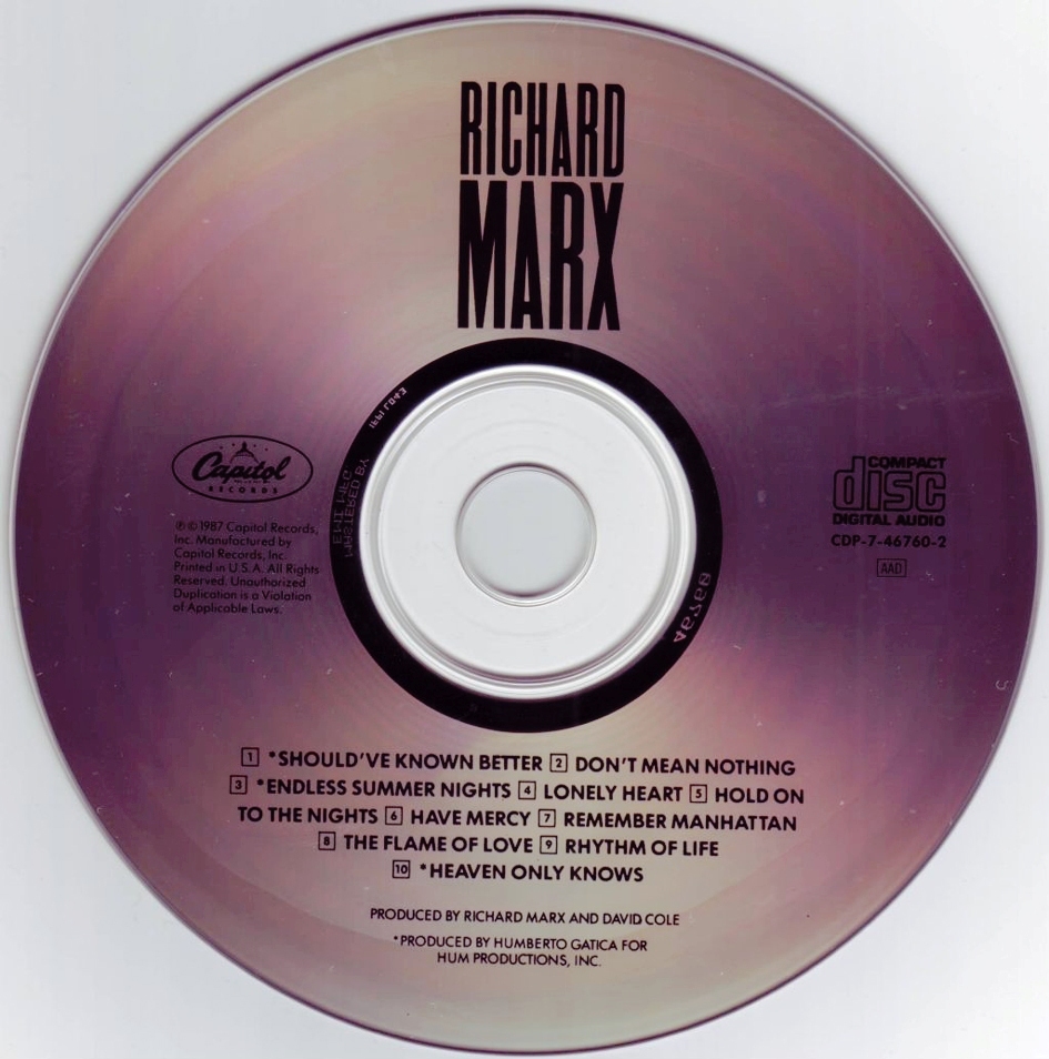 Richard Marx — дебютный альбом американского певца и автора песен Ричарда Маркса, выпущенный 15 мая 1987 года.