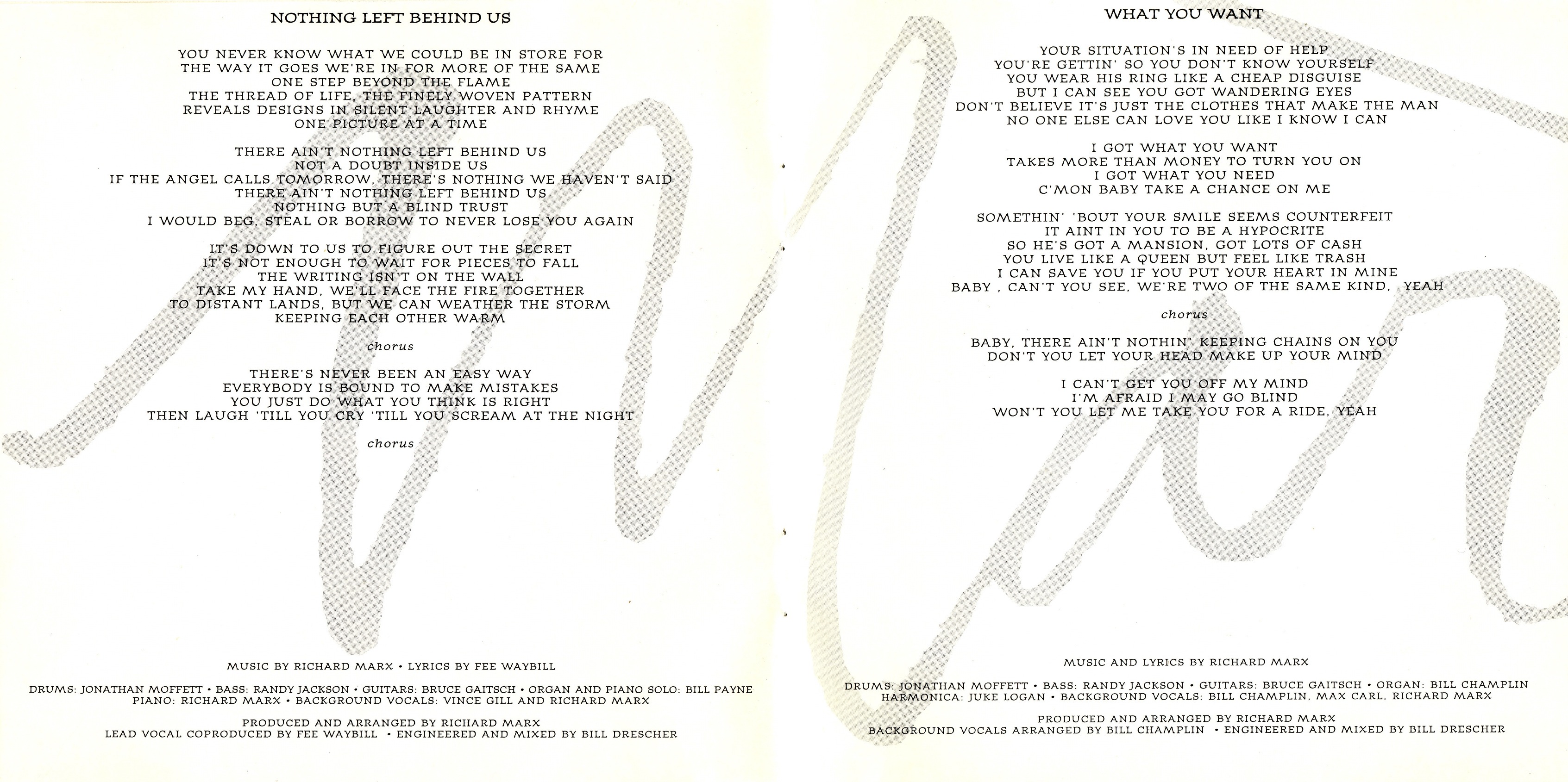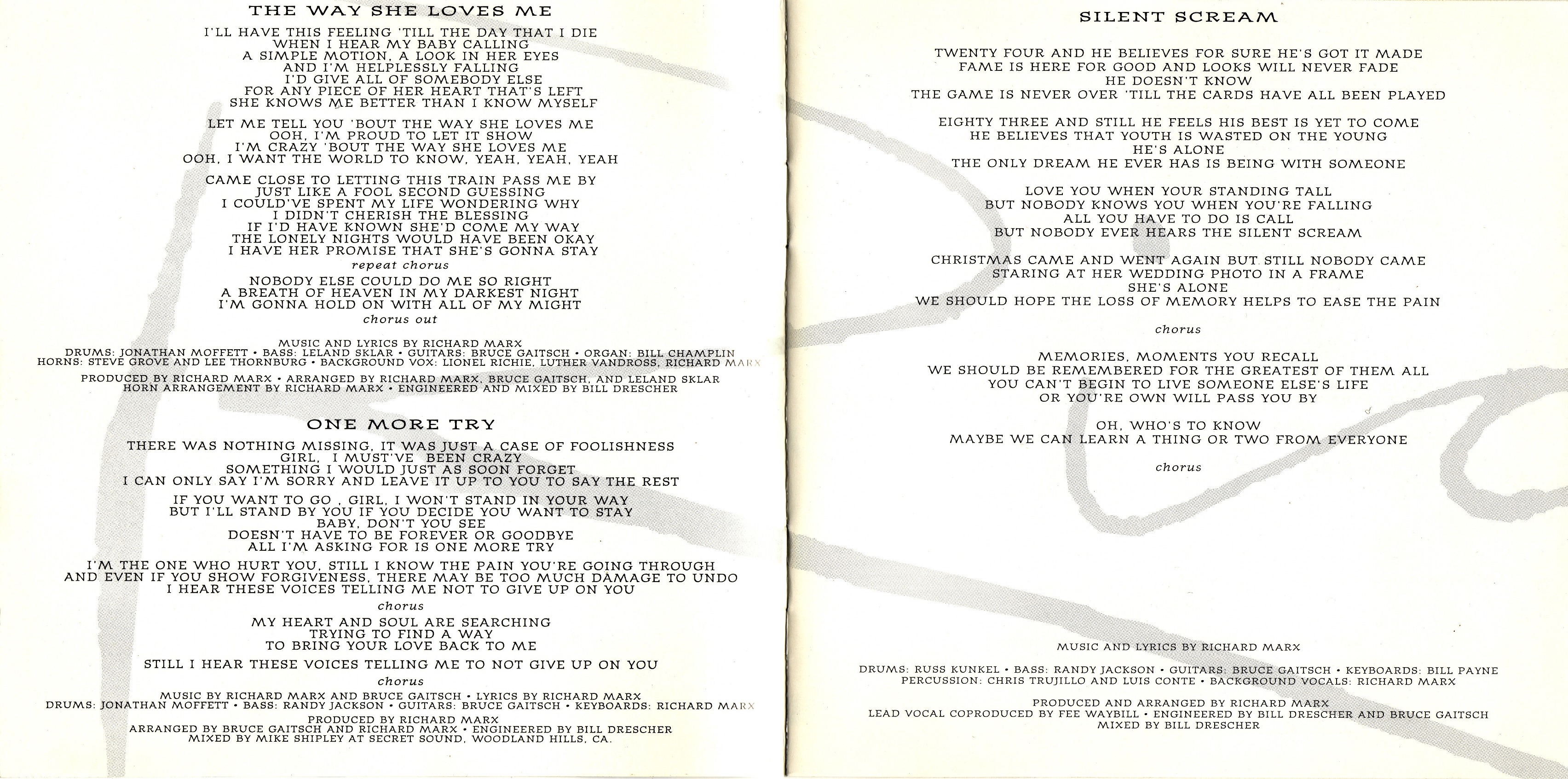 ► Все песни написаны и написаны Ричардом Марксом, если не указано иное.