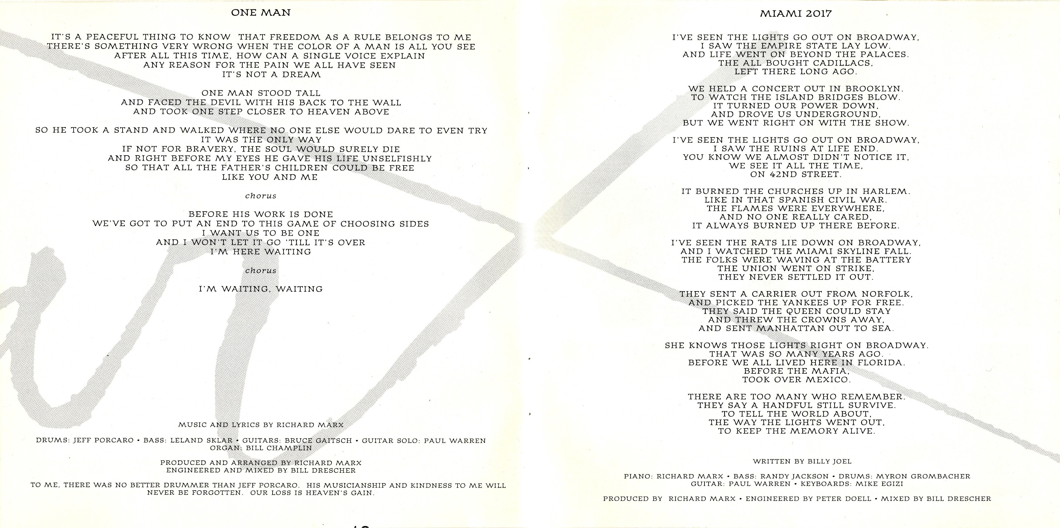 Альбом был посвящён тогдашней жене Маркса Синтии Роудс и сыновьям Брэндону, Лукасу и Джесси Марксу.