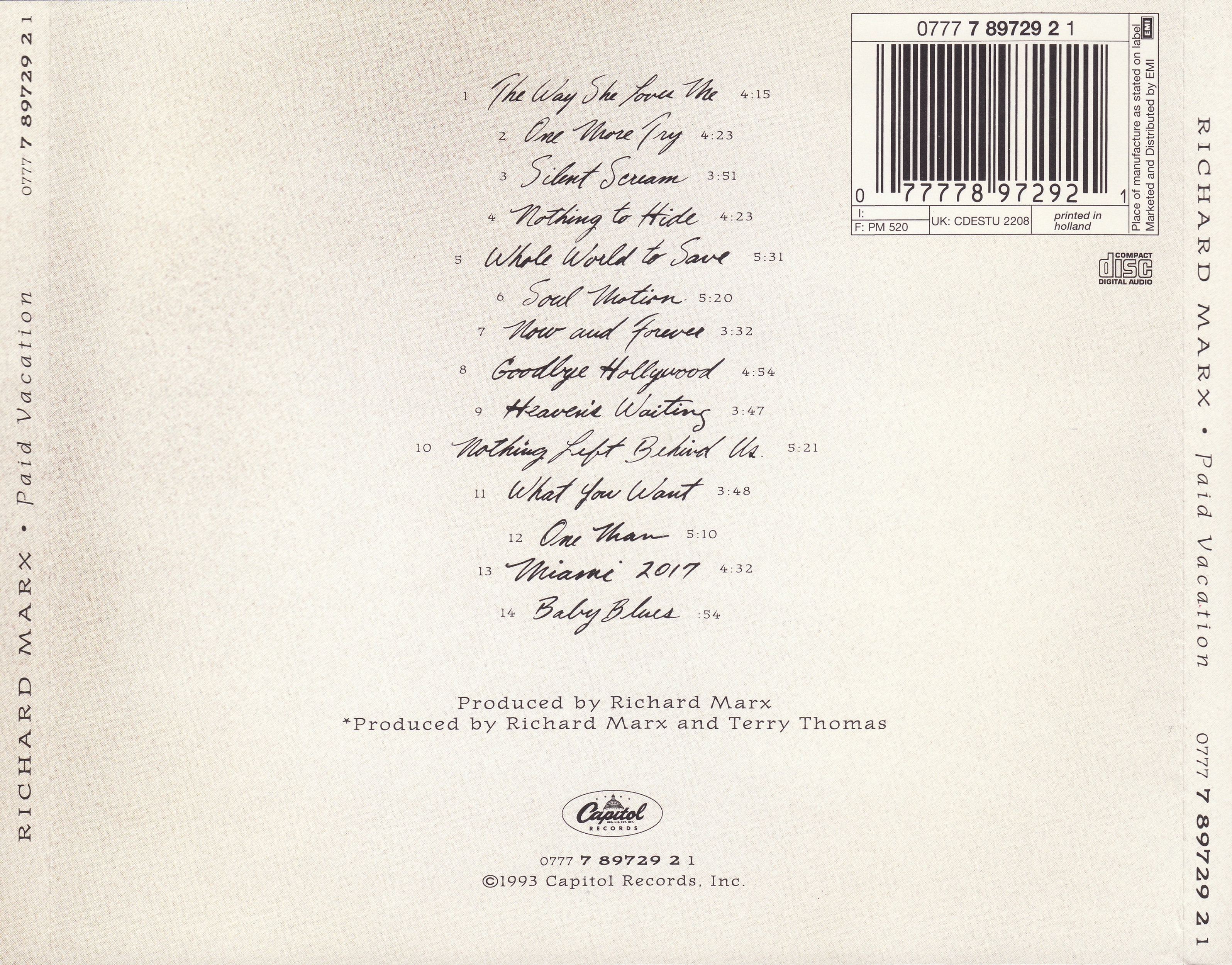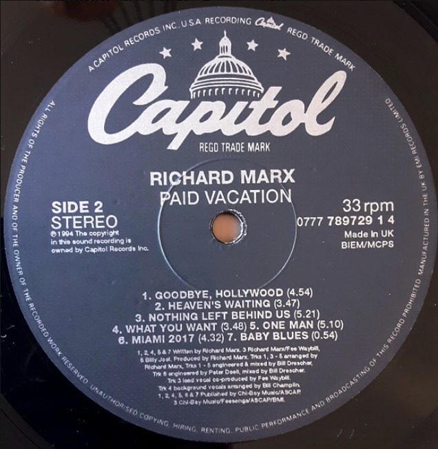 Very similar to Richard Marx - Paid Vacation same cat# but no SID codes.
