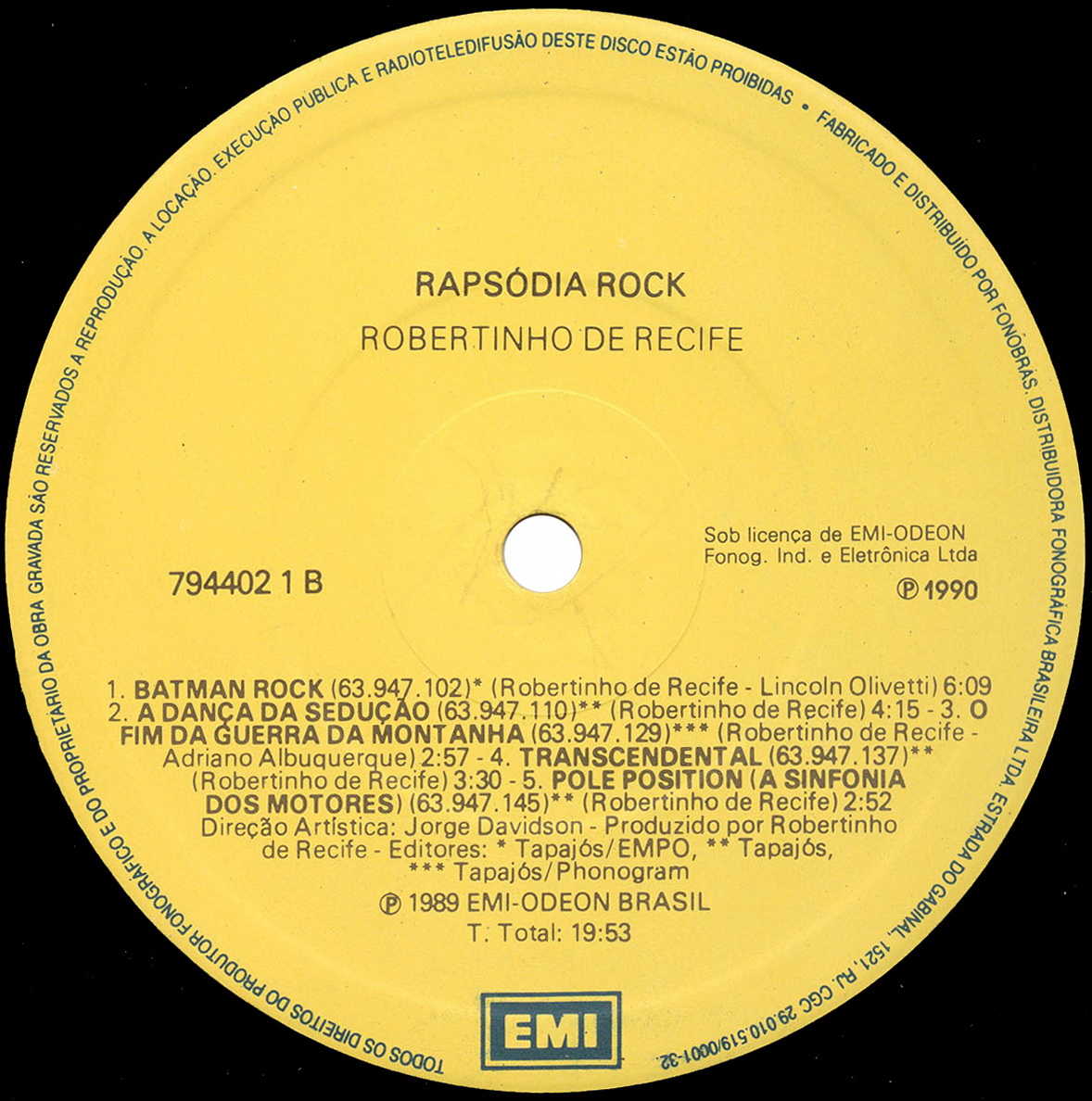 Robertinho De Recife – Rapsódia Rock 1990 LP EMI 794402-1