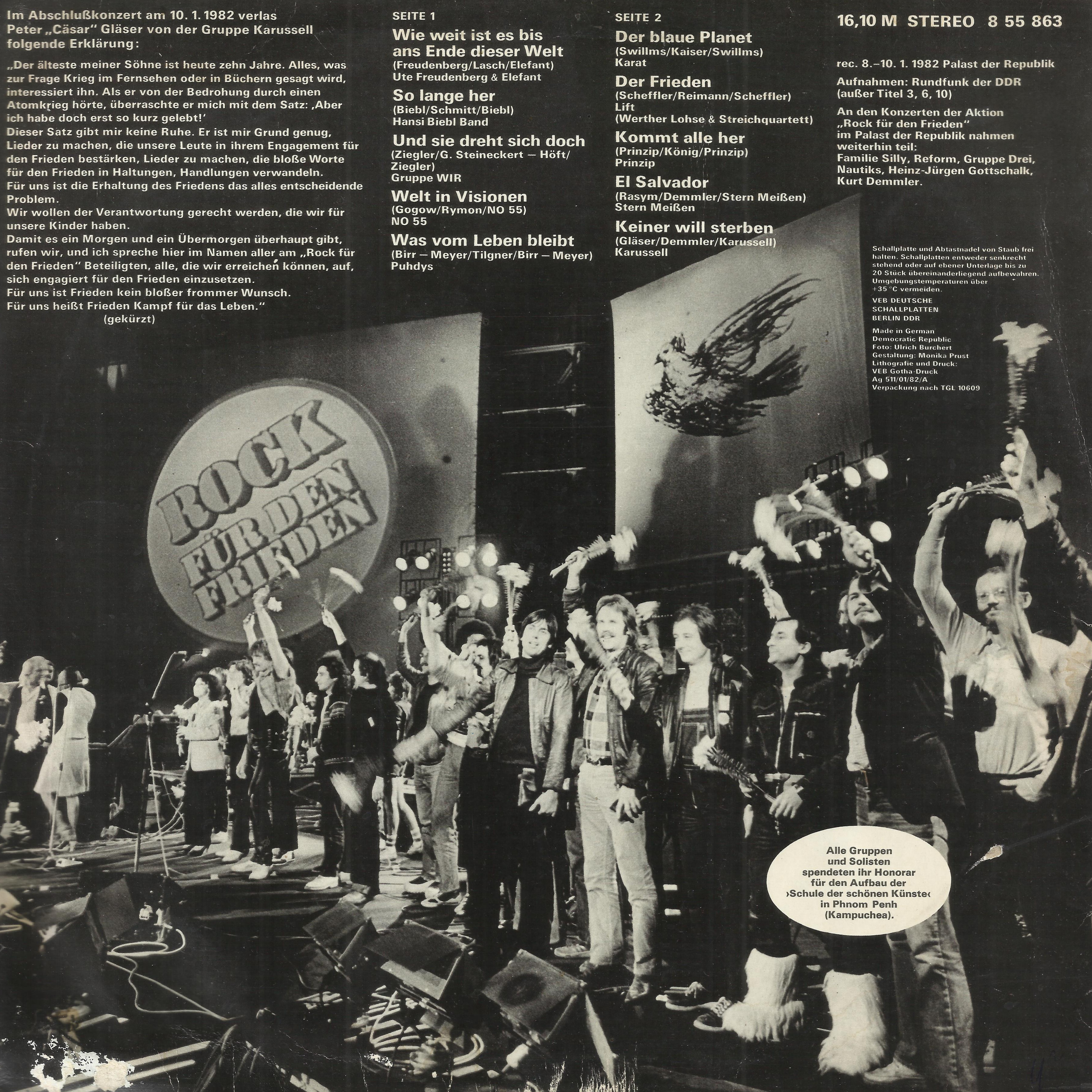 An den Konzerten der Aktion „Rock für den Frieden" im Palast der Republik nahmen weiterhin teil: