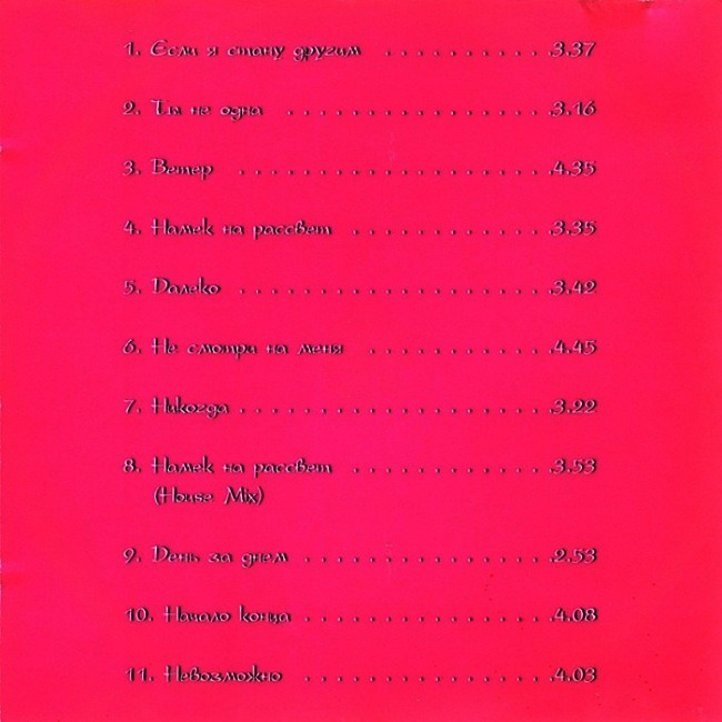 “Невозможно”. Какая-то гитарная штука. Чуть ли не “Cure”. Голос почти неузнаваем. Но вообще-то ничего.