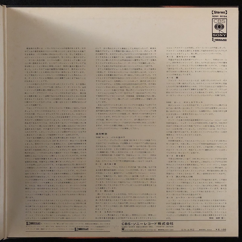 Caravelli And His Magnificent Strings – Caravelli Chanson Deluxe, 1970, SONX-60164, Japan, мр3 разный (для ознакомления)