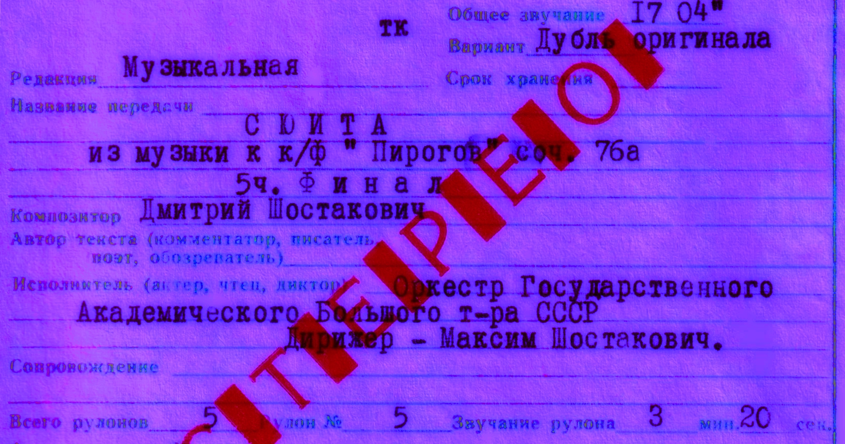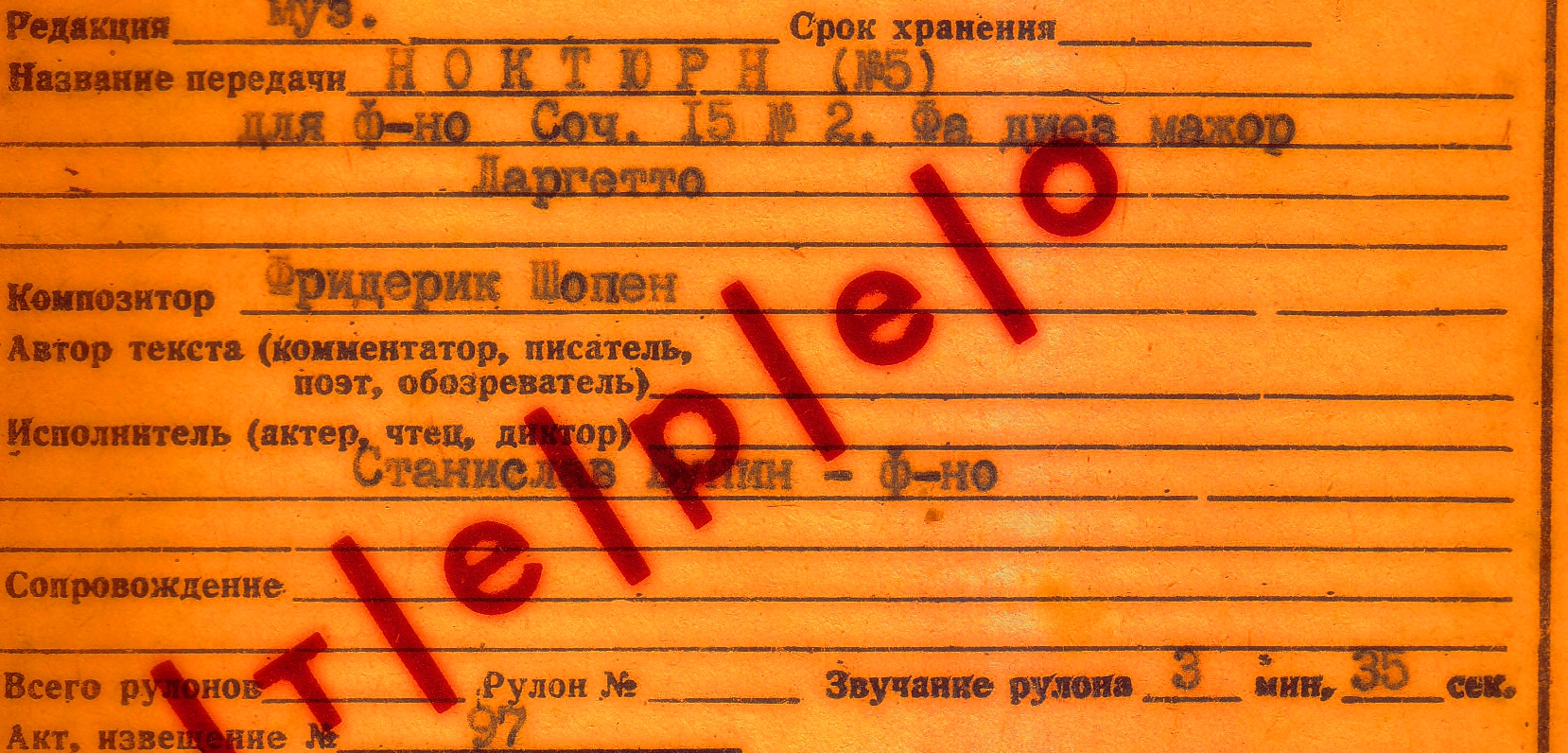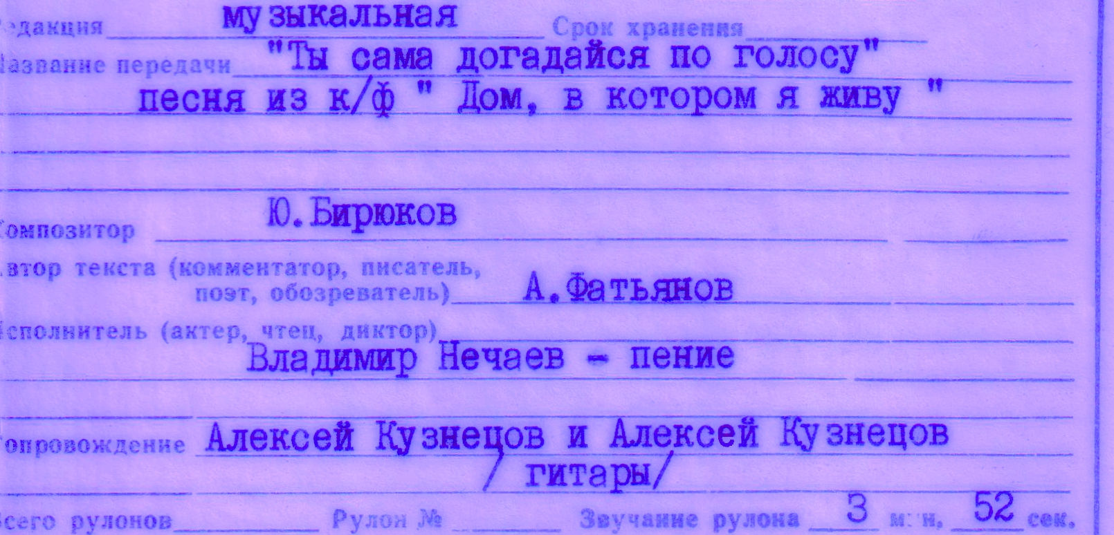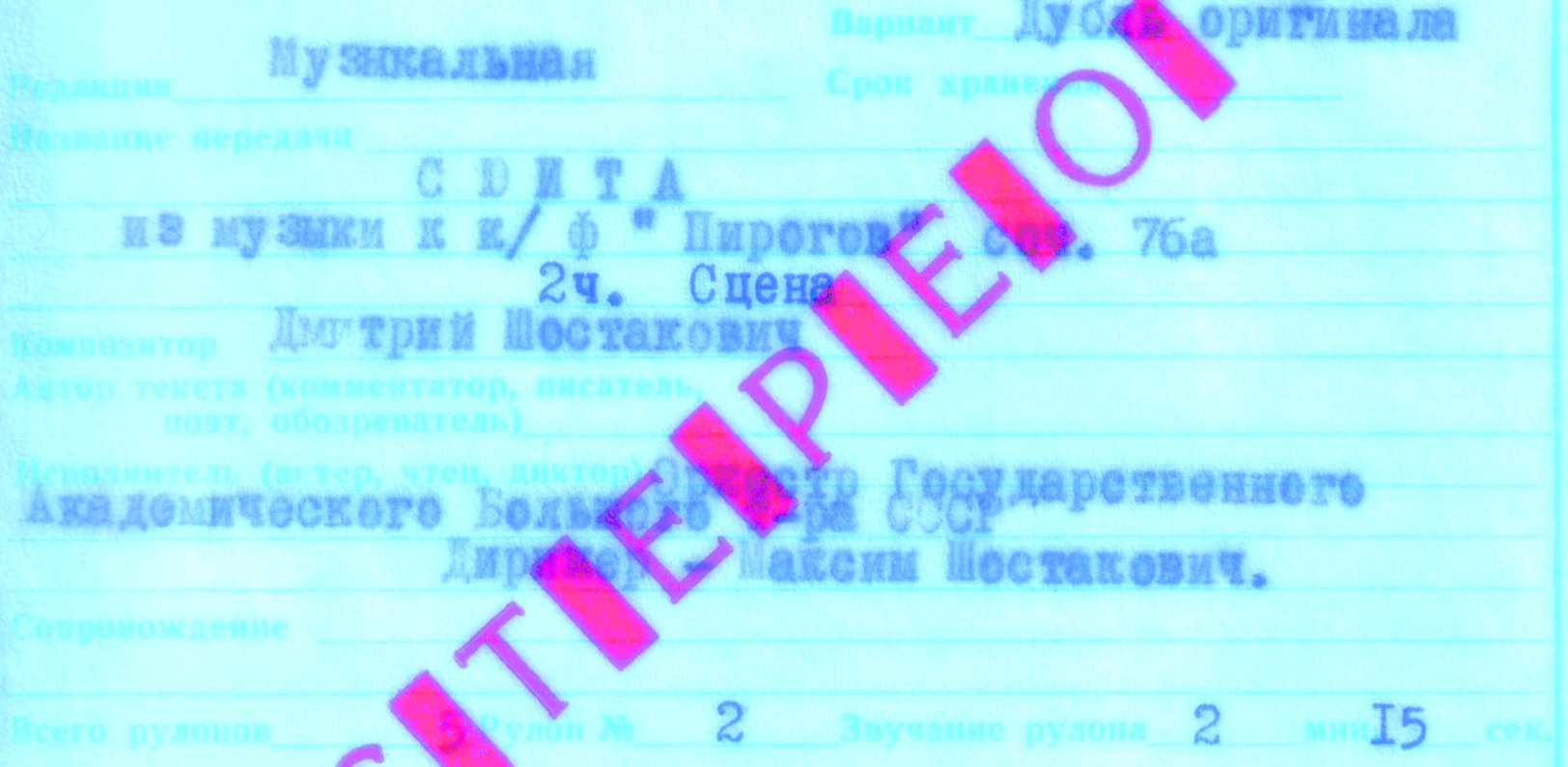 Уточнение не принято. Посмотрите внимательно на фото коробки с рулоном. Информация опубликована не только на основе фото, а также после сверки с монтажным листом передачи, паспортом самой записи и картотекой ГДРЗ. Будьте внимательны!
