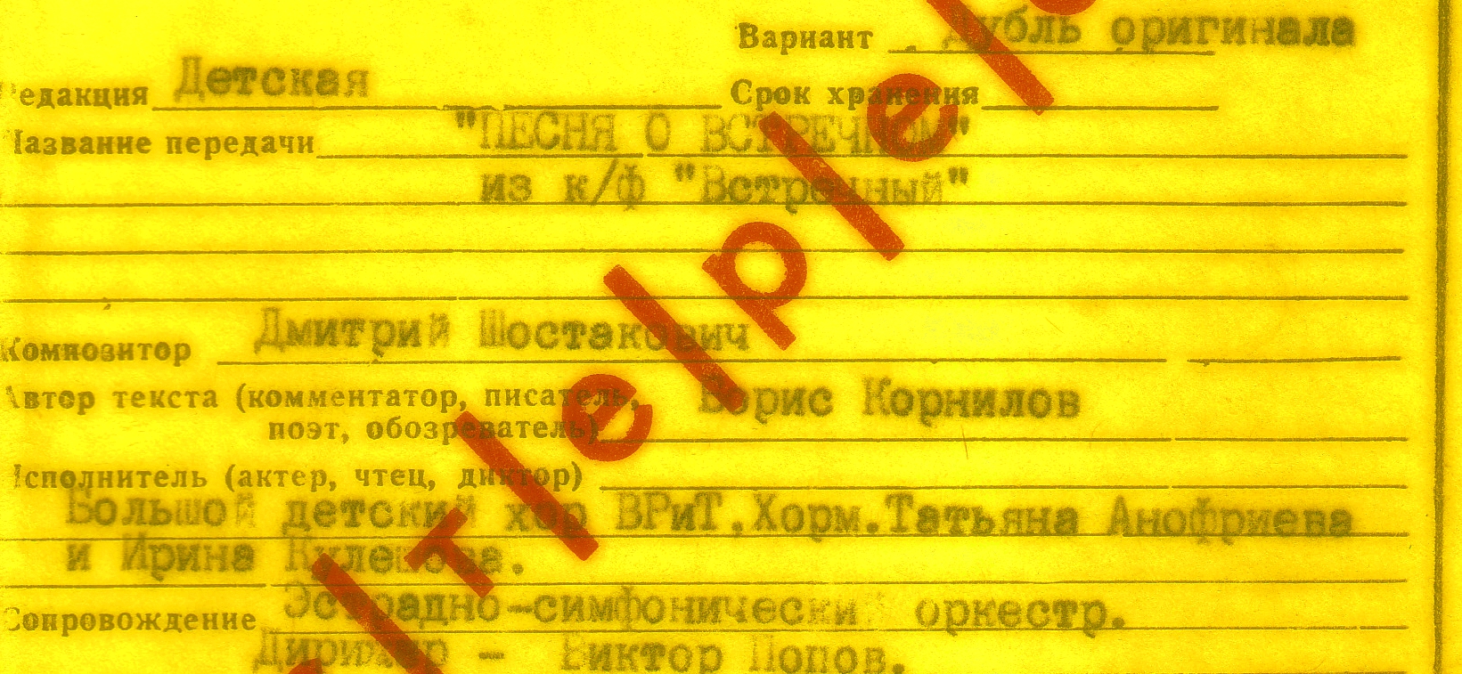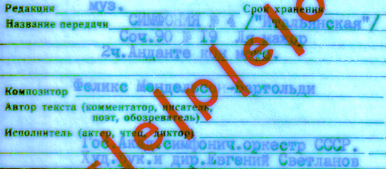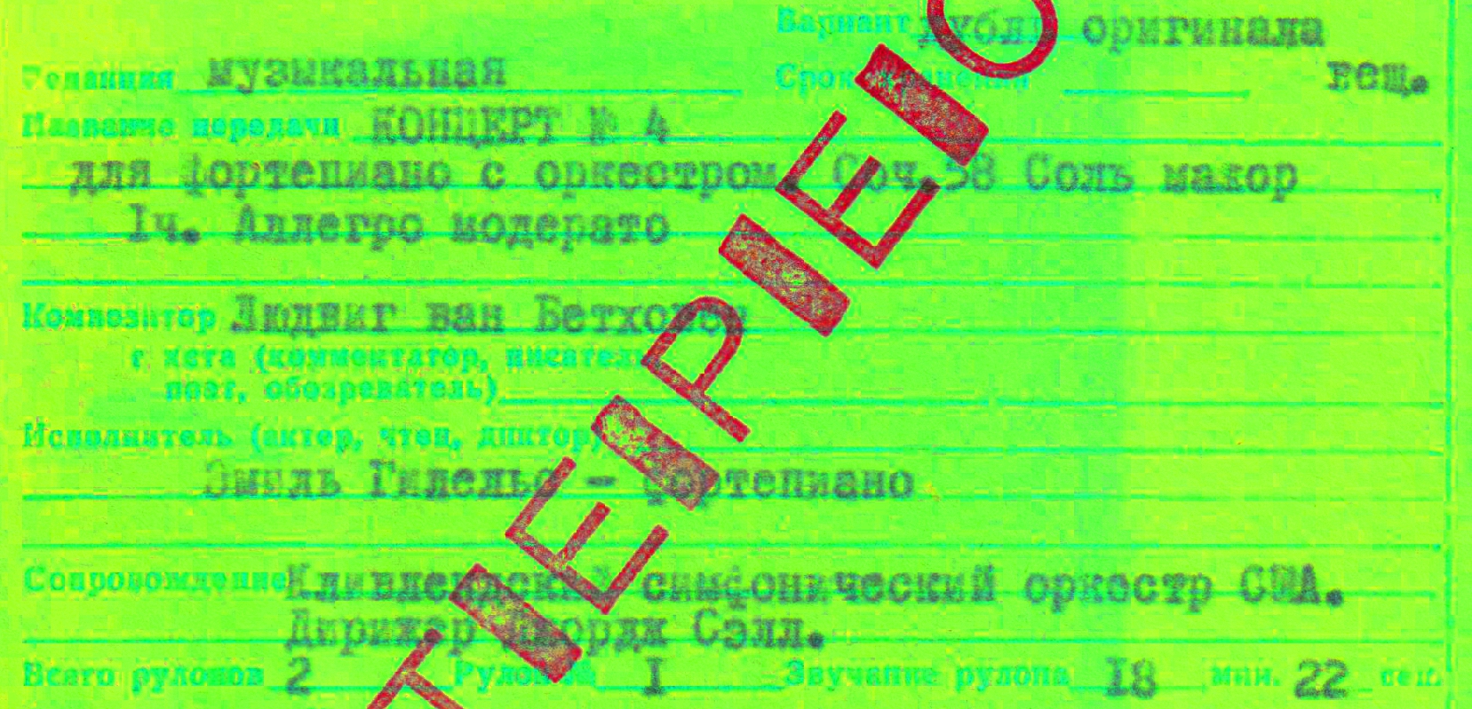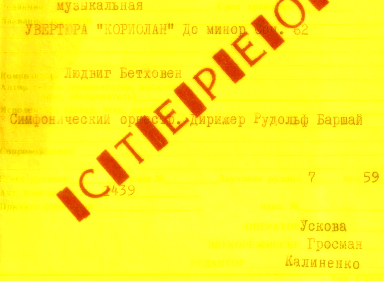 Уточнение не принято. Посмотрите внимательно на фото коробки с рулоном. Информация опубликована не только на основе фото, а также после сверки с монтажным листом передачи, паспортом самой записи и картотекой ГДРЗ. Будьте внимательны!