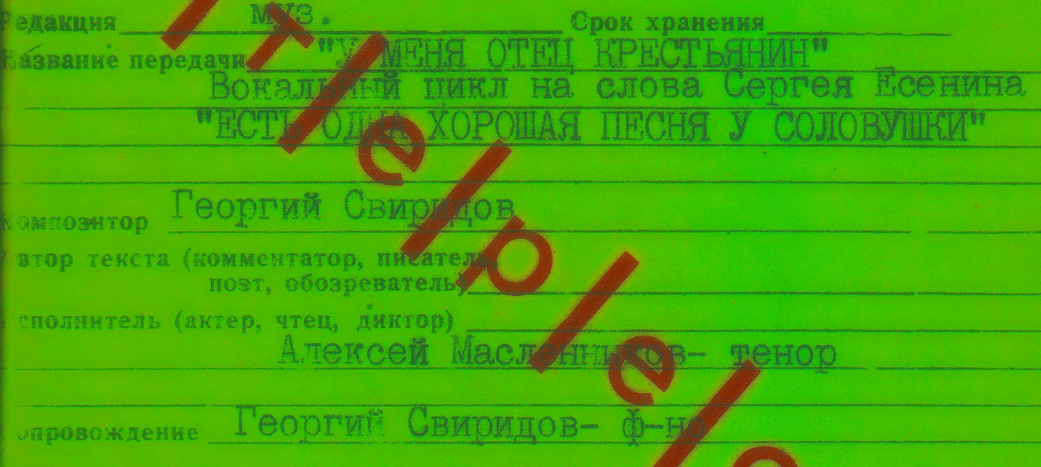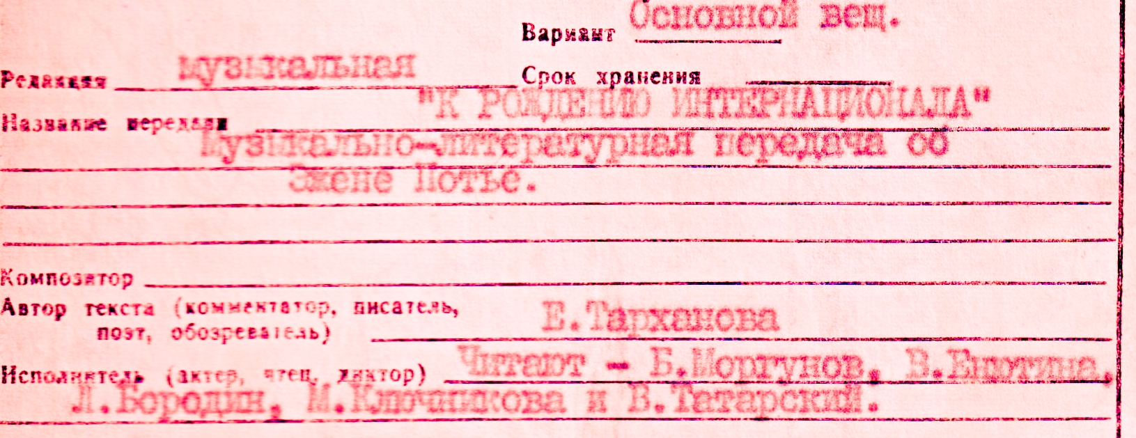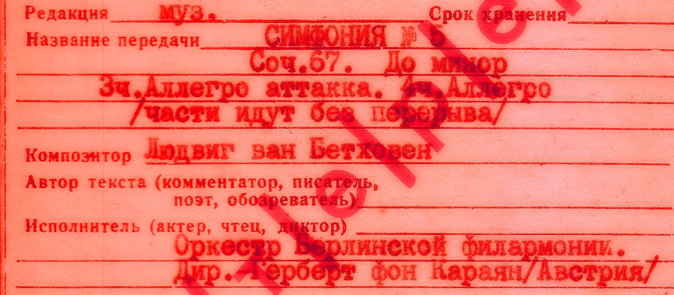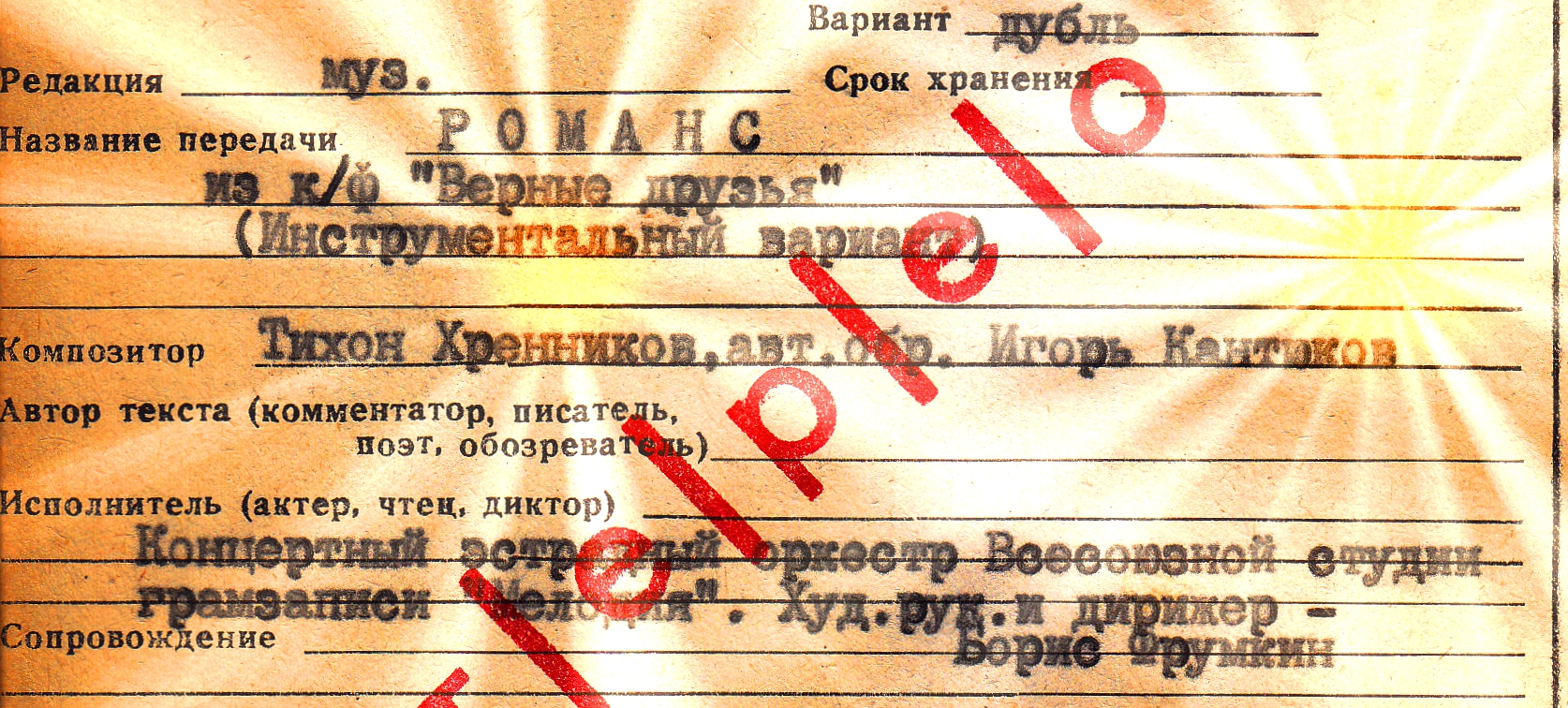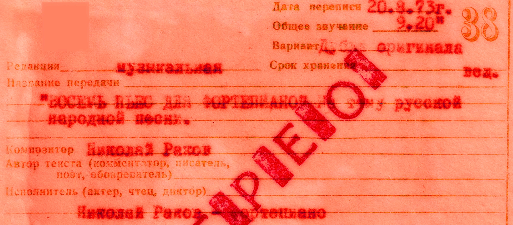 Уточнение не принято. Посмотрите внимательно на фото коробки с рулоном. Информация опубликована не только на основе фото, а также после сверки с монтажным листом передачи, паспортом самой записи и картотекой ГДРЗ. Будьте внимательны!