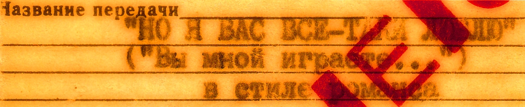 1988 год... 28 июля... Постоянная рубрика Радиостанции "Маяк" 64 - 96 "Из фондов Радио". В программе принимают участие: Л.Симонова, М.Михайлов, И.Козловский, А.Стрельченко, В.Иванова и Г.Карева!