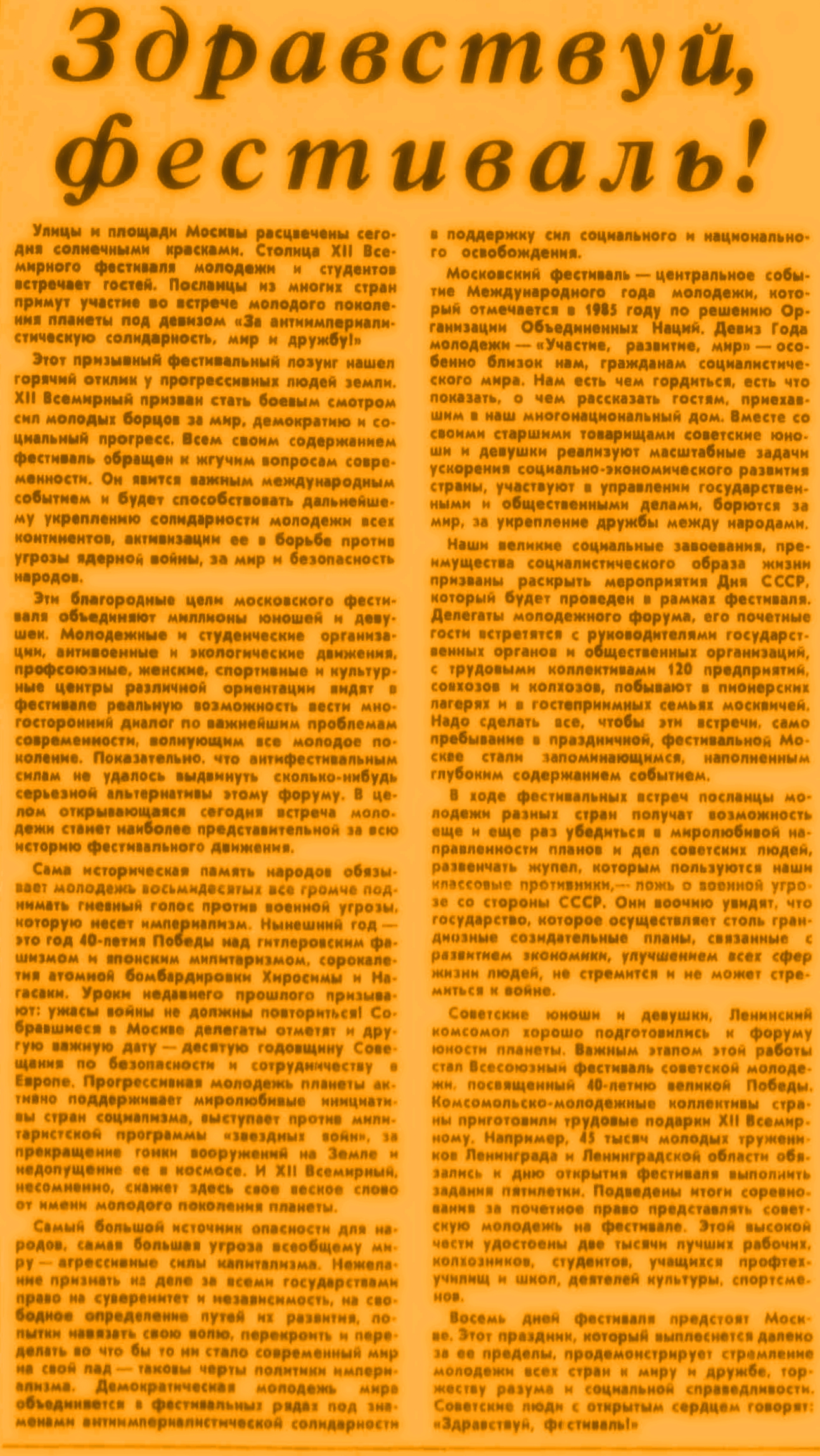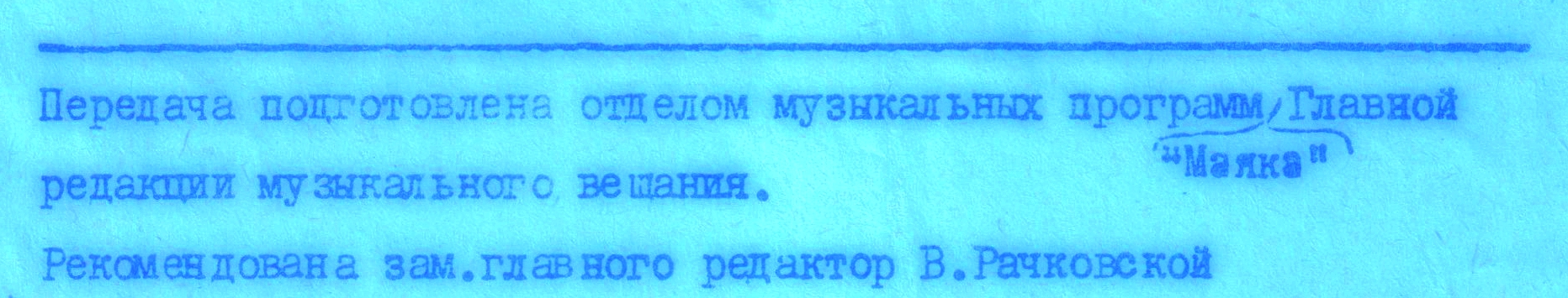 1985 год... 13 мая... В эфире "Маяка" 64 - 96 концерт артистов эстрады союзных республик! Солисты: Вокально-инструментальный ансамбль "Песняры", Ю.Богатиков, Ш.Айрумян, С.Маркарян, Л.Худоян, А.Акопян, Н.Чепрага, "ВИА-75" и Б.Петриките!